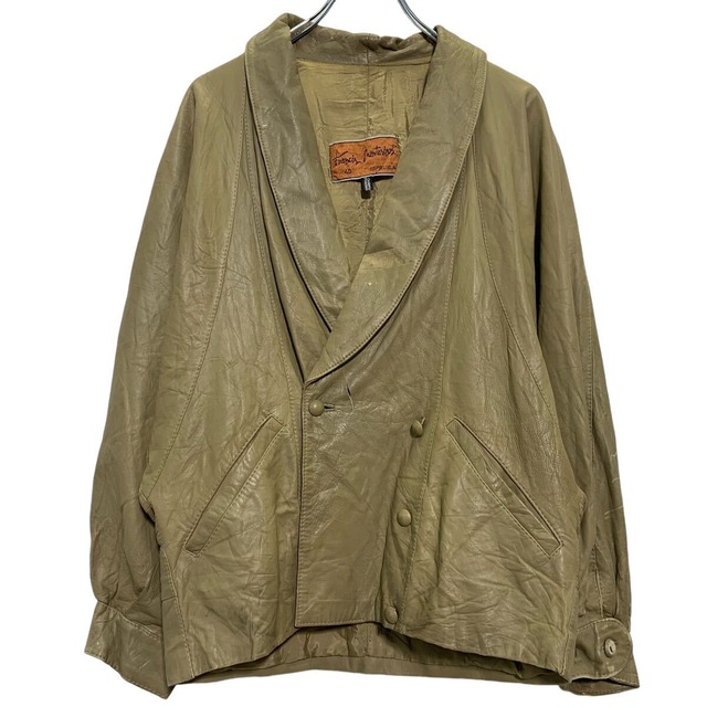 レザージャケット 40 L 程 ベージュ ボタン ラグラン 秋冬 アウター 古着卸 アメリカ仕入 a611-5506