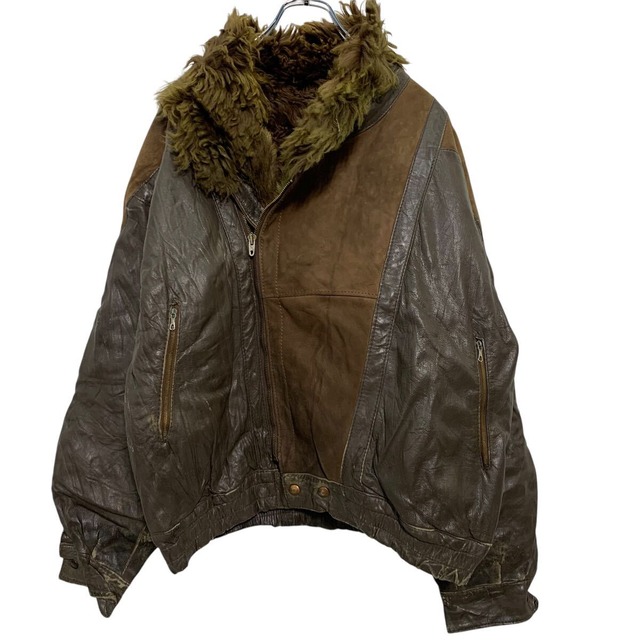 ジップアップ レザージャケット M ブラウン 襟ボア 裏キルティング ブルゾン 古着卸 アメリカ仕入 a612-5816