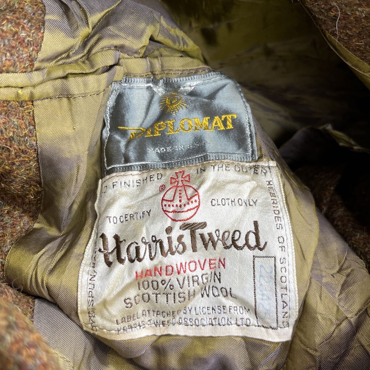 USA製 Harris Tweed テーラードジャケット L~ ブラウン ハリスツイード ボタン ブレザー アウター 秋物 a712-5791