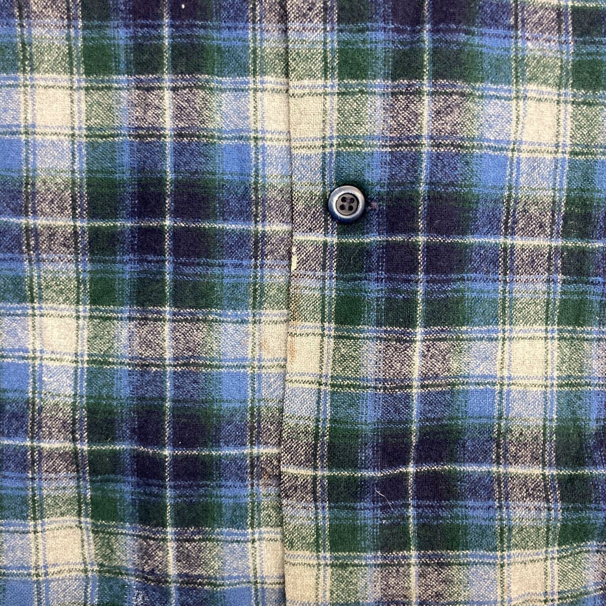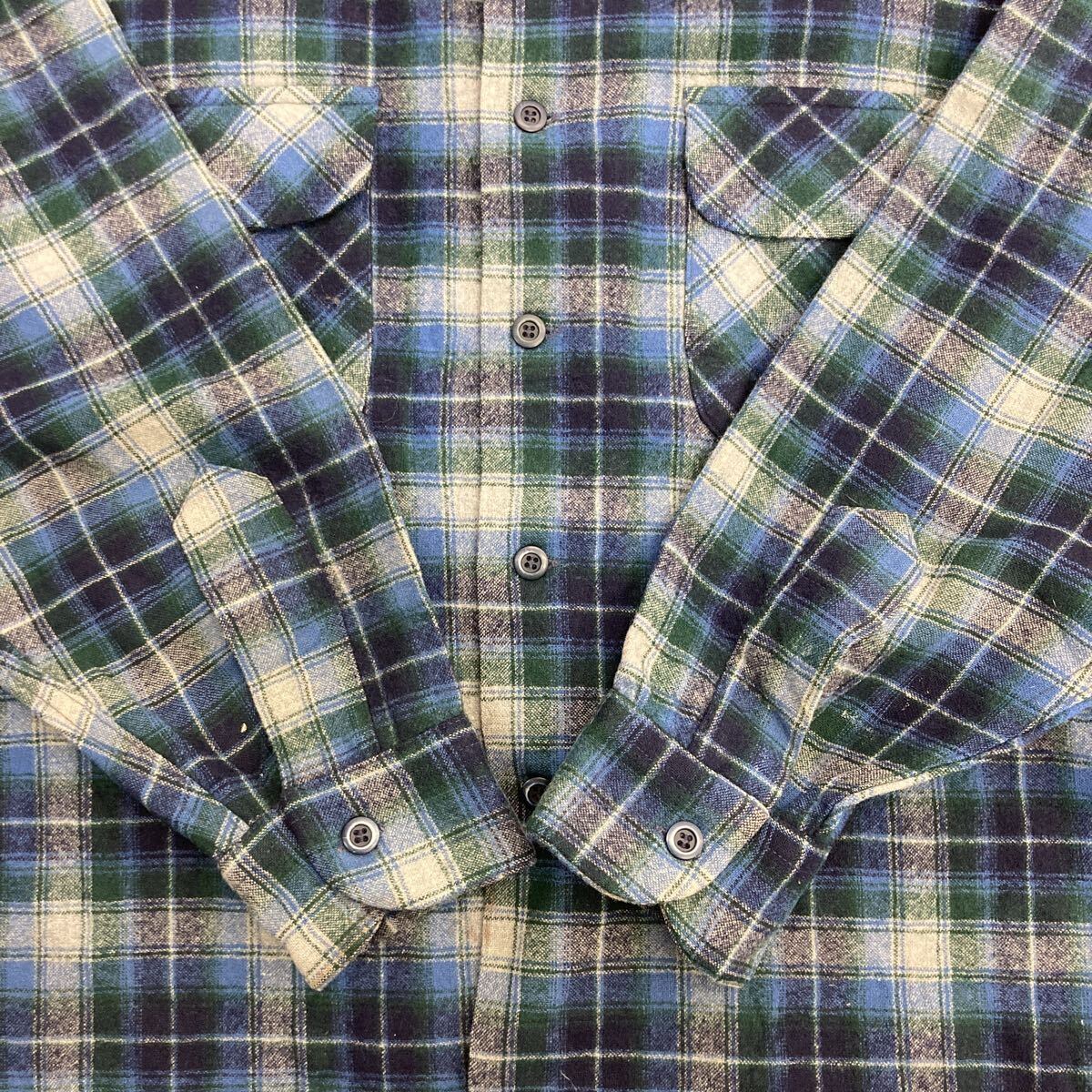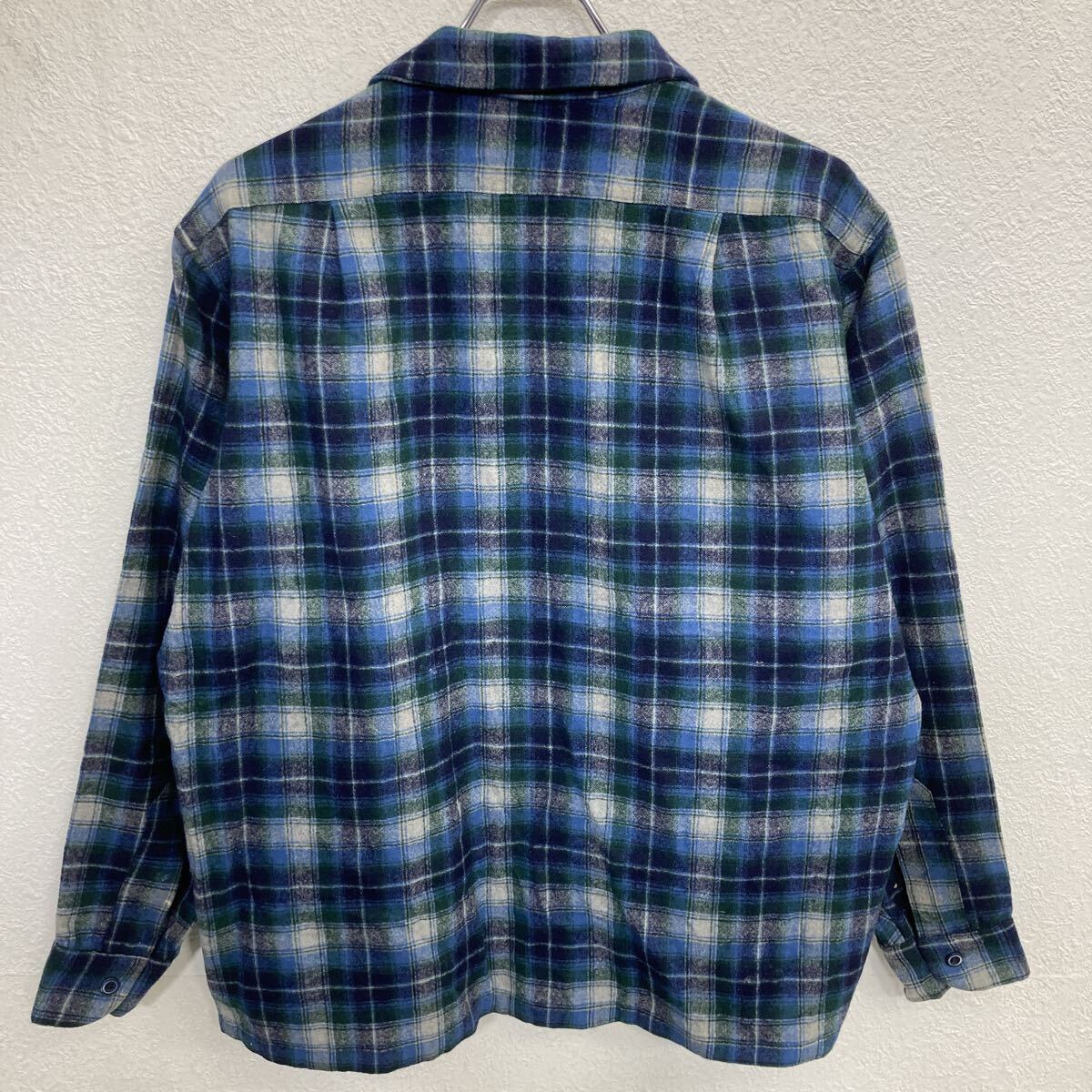 70s USA製 PENDLETON 長袖 ウールシャツ XL マルチカラー ブルー系 ペンドルトン 開襟 ボードシャツ ボックスシルエット 秋物 a801-5355
