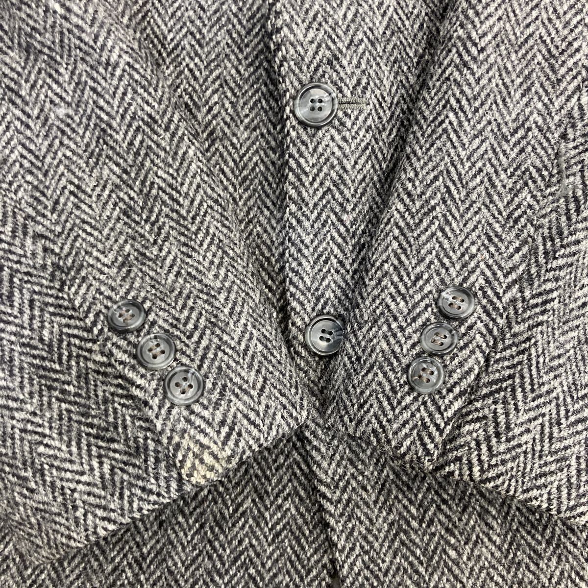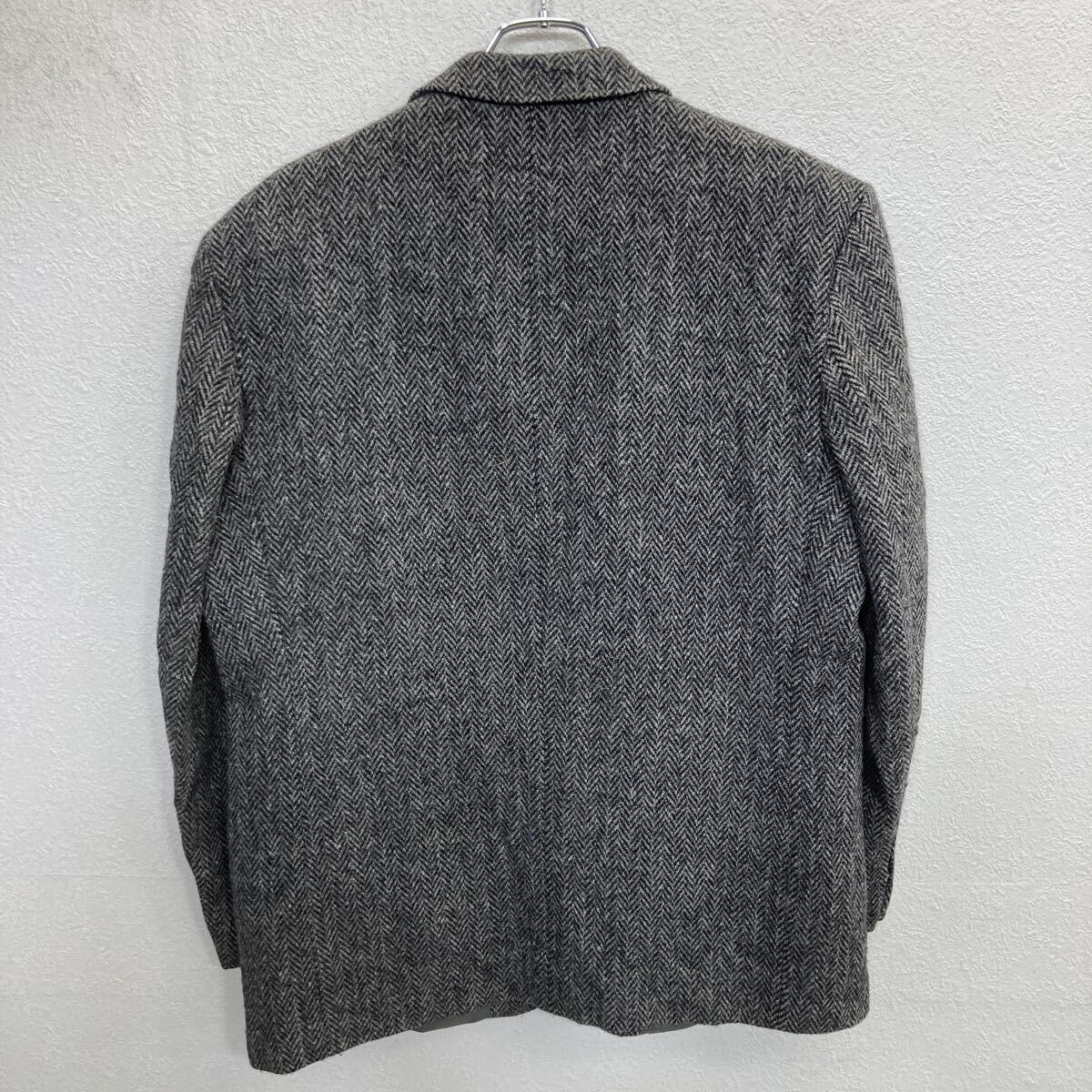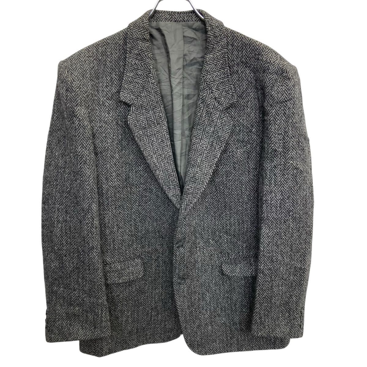 00s Harris Tweed テーラードジャケット XL~ グレー ハリスツイード ヘリンボーン ブレザー 肩パッド アウター 秋冬物 a801-5450