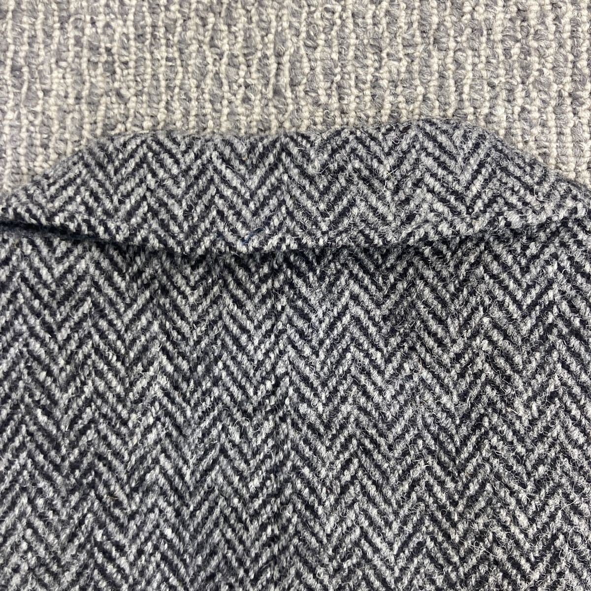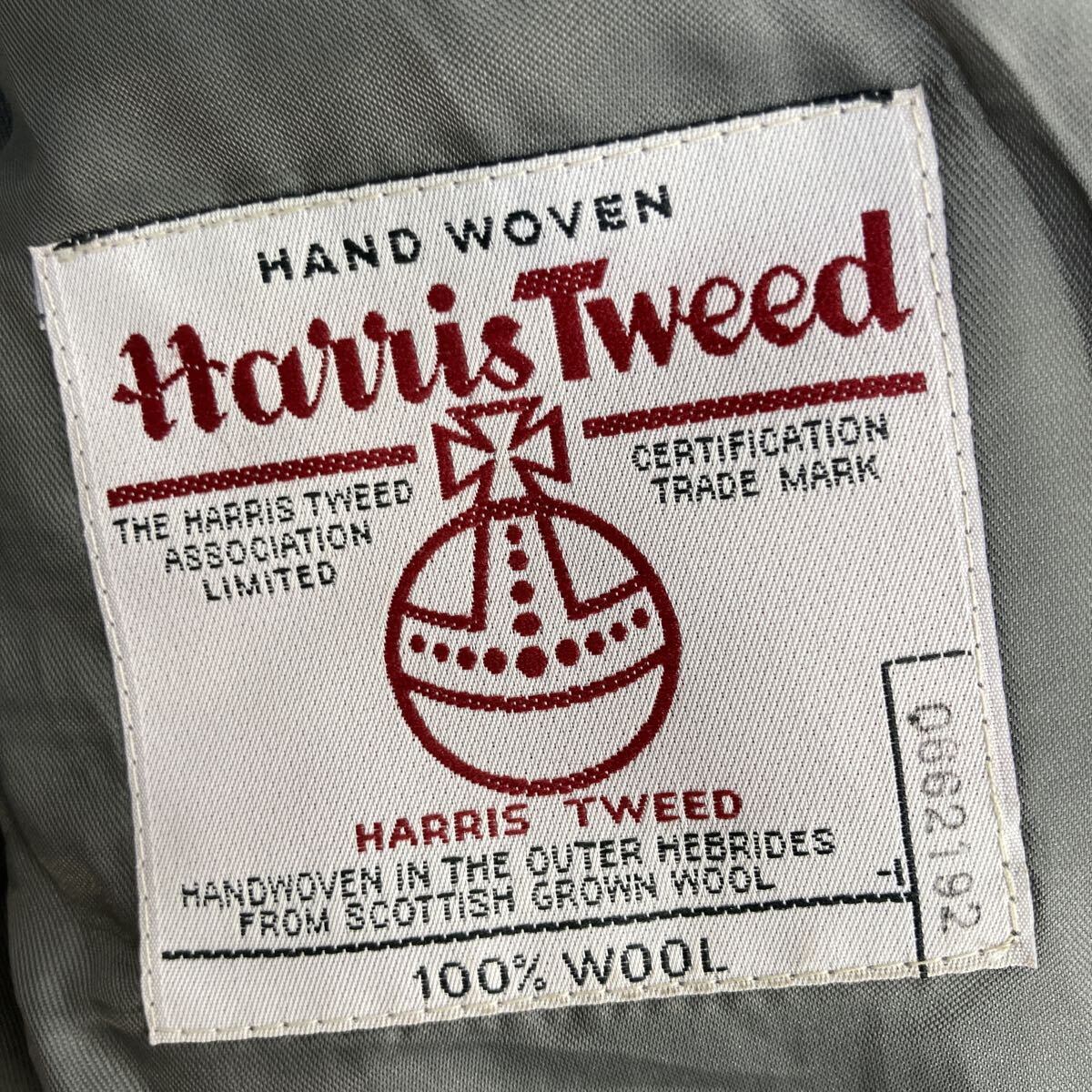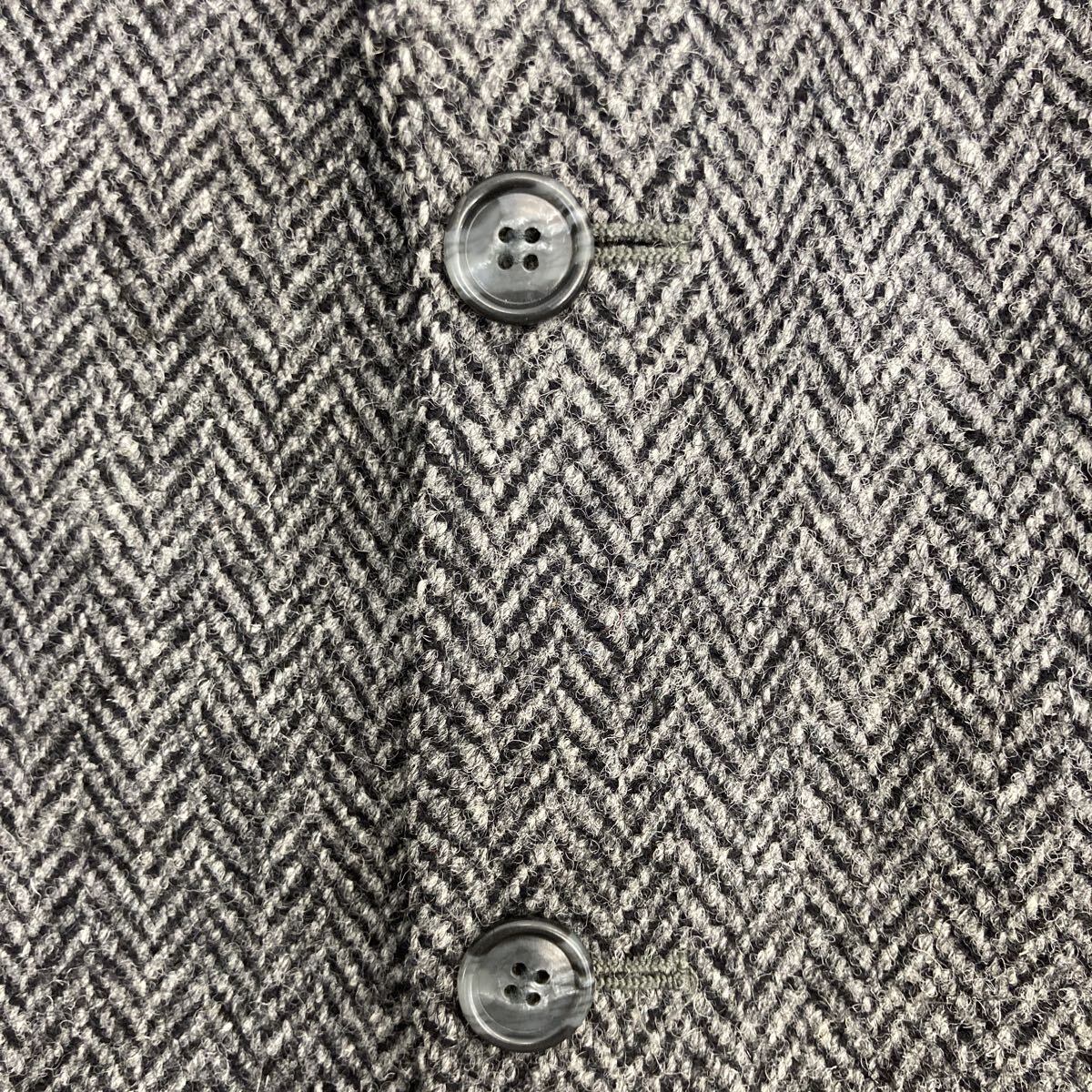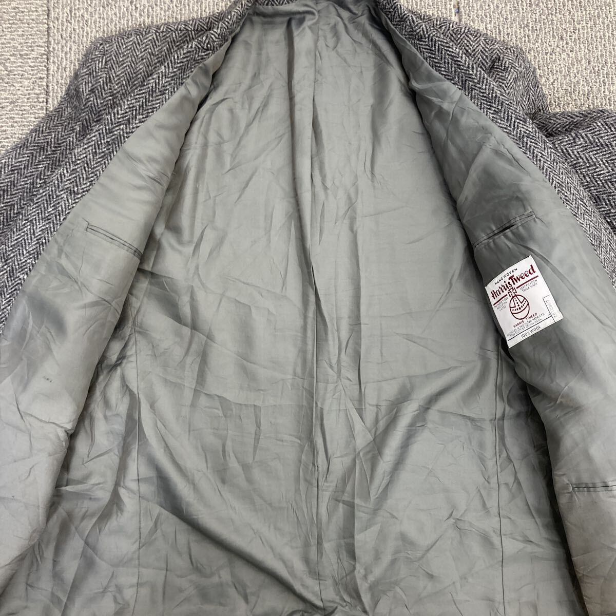 00s Harris Tweed テーラードジャケット XL~ グレー ハリスツイード ヘリンボーン ブレザー 肩パッド アウター 秋冬物 a801-5450
