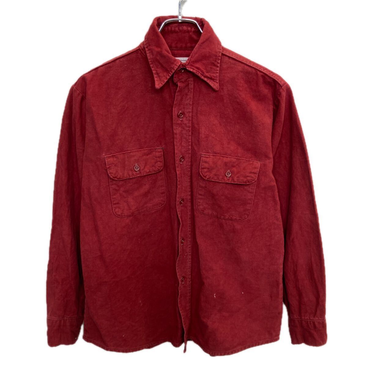 90s USA製 FIVE BROTHER 長袖 ネルシャツ M レッド ファイブブラザー ボタン シャモアクロス 胸ポケット トップス 秋冬物 a801-5534