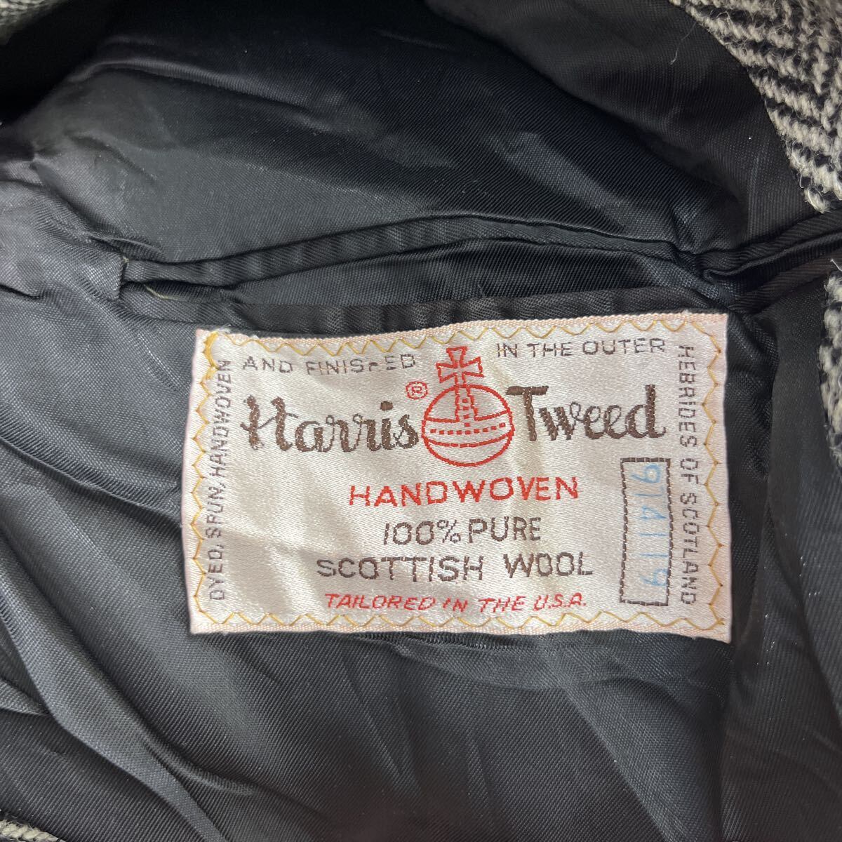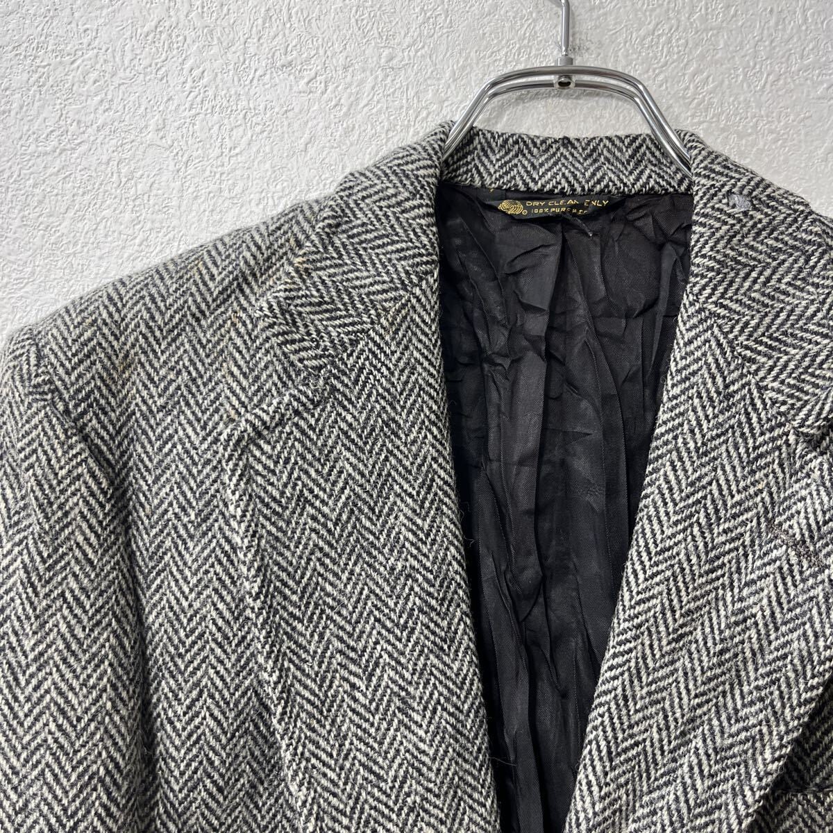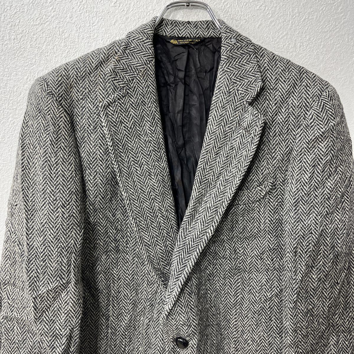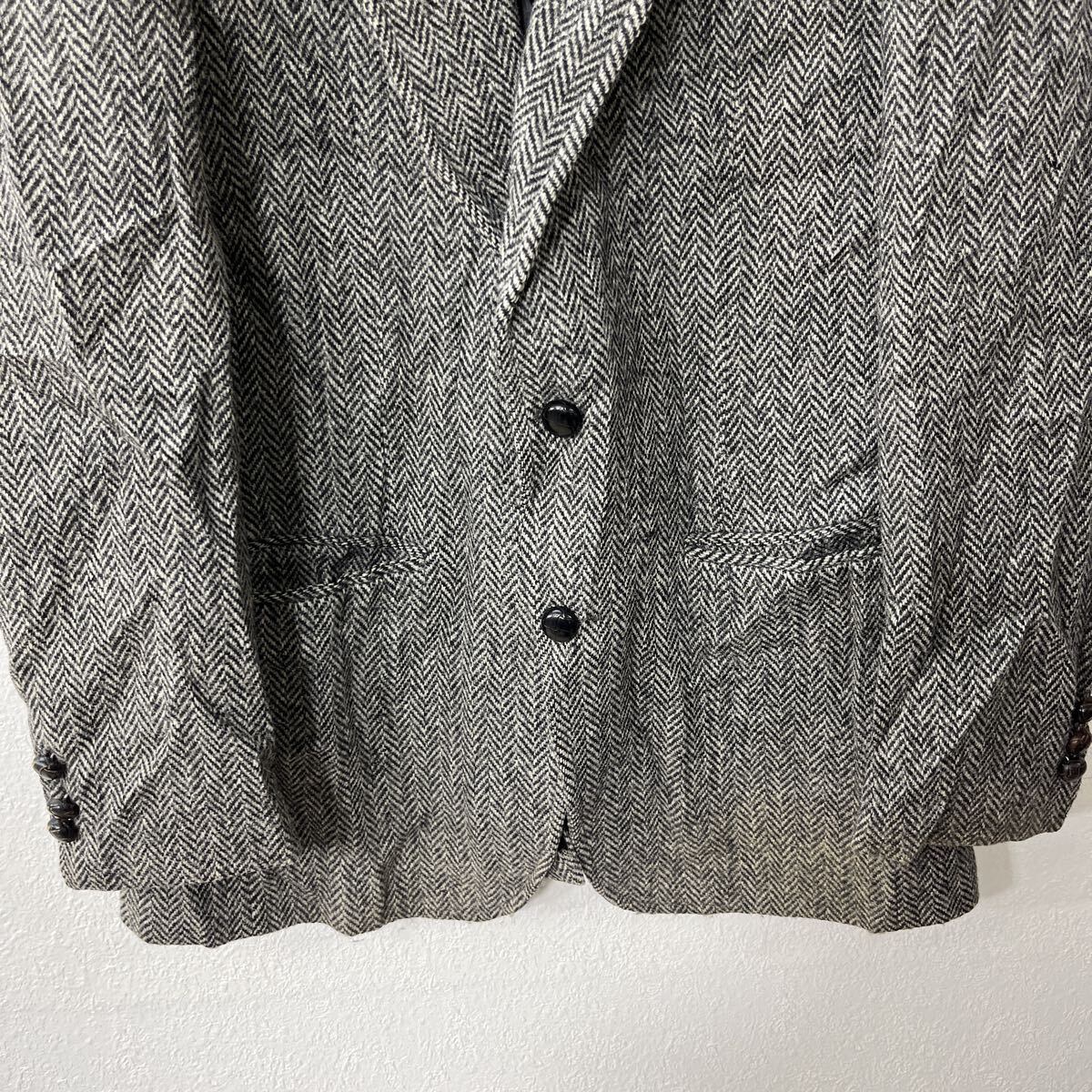 Harris Tweed テーラードジャケット L~ グレー ブラック ハリスツイード ウール ヘリンボーン柄 ブレザー アウター 秋物 a802-5237 | 古着屋DEN(デン)大阪・古着卸・安い