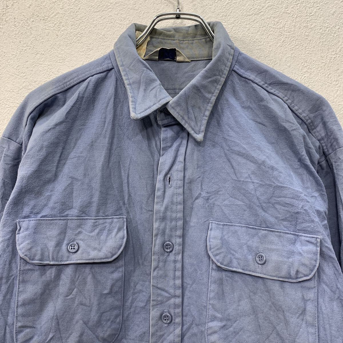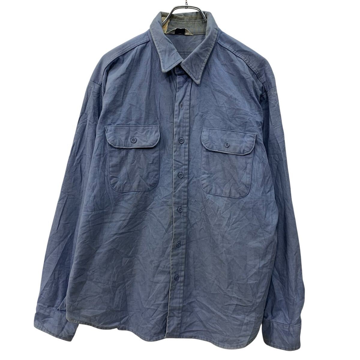 ~80s USA製 FIUE BROTHER 長袖 無地シャツ XL サックスブルー ファイブブラザー ボタン 襟芯 80年代 シャモアクロス 春秋物 a802-5782 | 古着屋DEN(デン)大阪・古着卸・安い