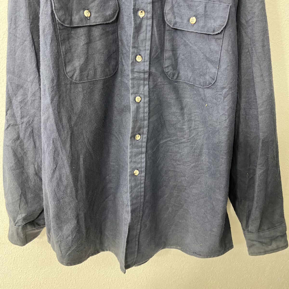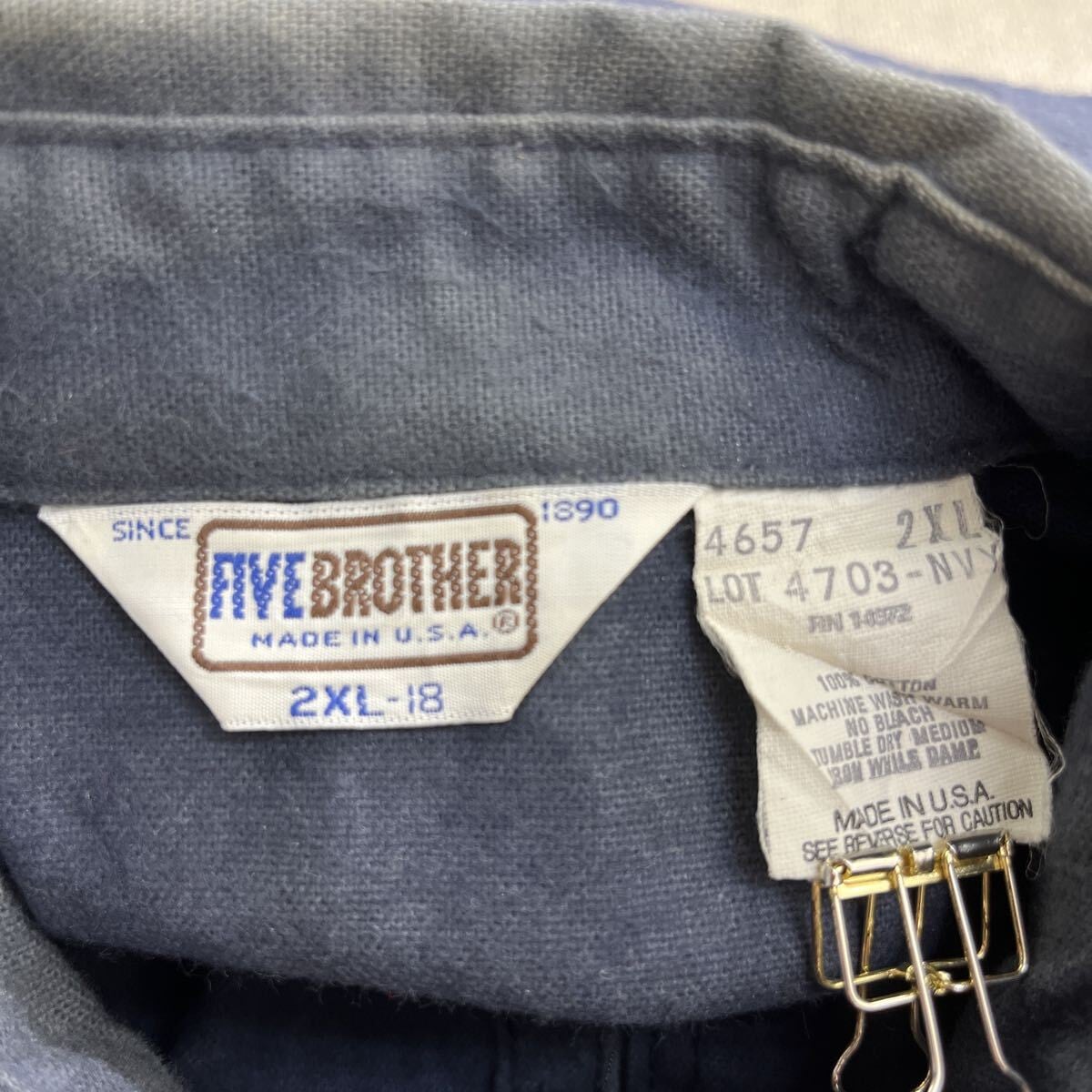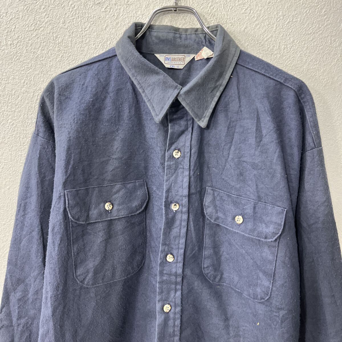 80s USA製 FIVE BROTHER 長袖 無地シャツ 2XL ネイビー ファイブブラザー ボタン 80年代 シャモアクロス フランネル 春秋物 a803-5540