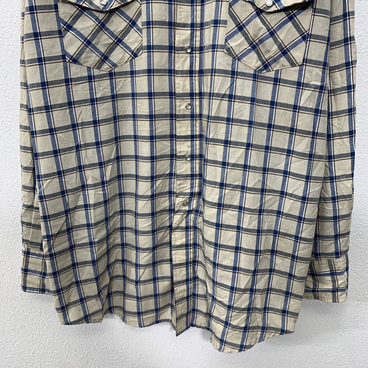 ~90s BIGMAC 長袖 チェックシャツ XL~ ベージュ ブルー ビッグマック スナップボタン ~90年代 チェック柄 襟芯 春秋物 a803-6333