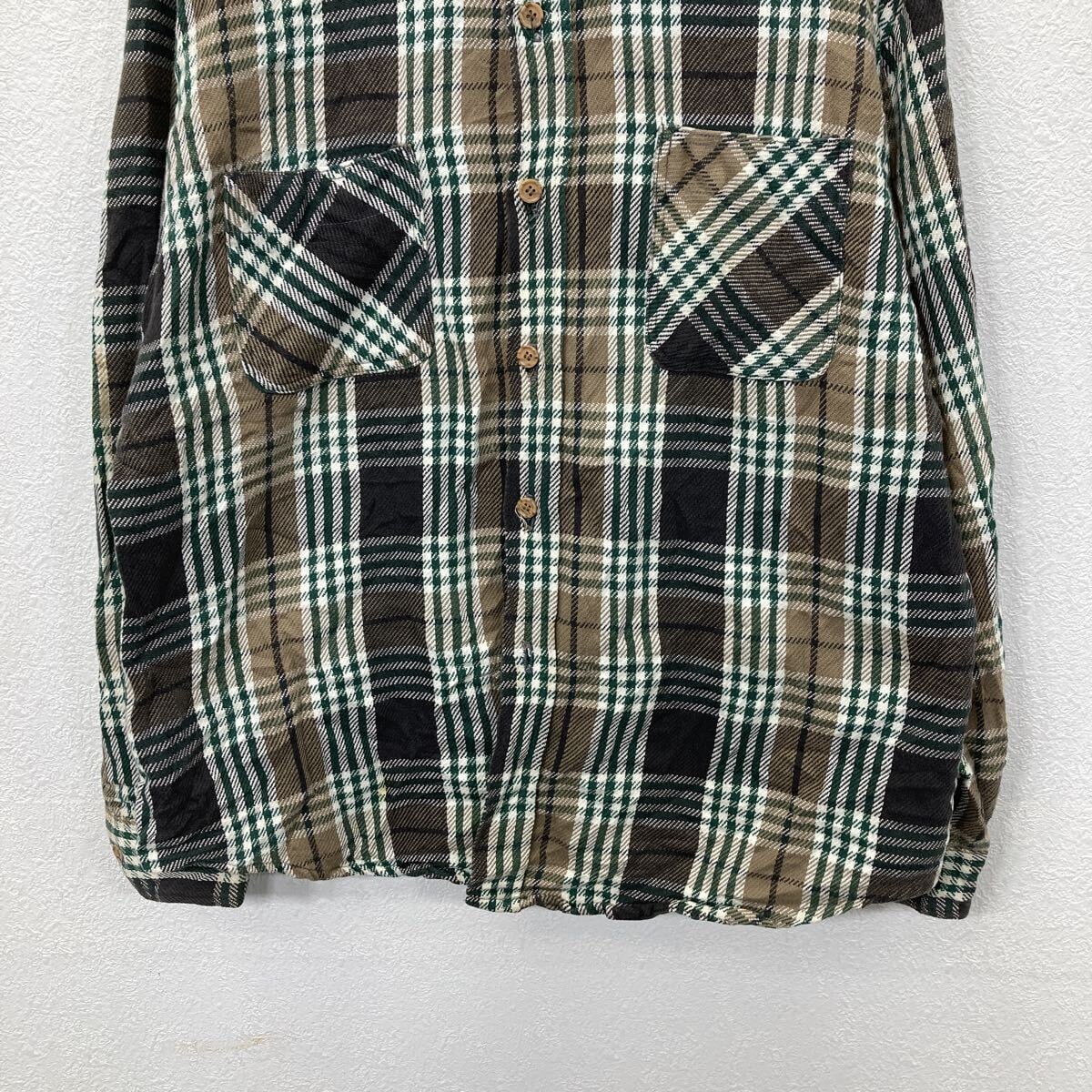 70s USA製 BIGMAC 長袖 チェック フランネルシャツ L グリーン マルチカラー ビッグマック ボタン 70年代 ネルシャツ 秋物 a803-6764
