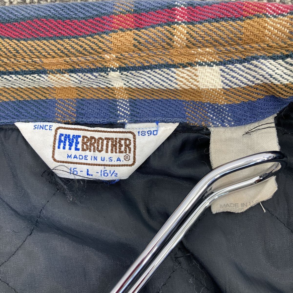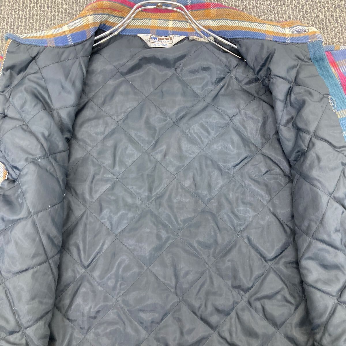 70s USA製 FIVEBROTHER 長袖 フランネルシャツ 16 L マルチカラー ファイブブラザー 裏地キルティング チェック ネルシャツ 秋物 a804-5037