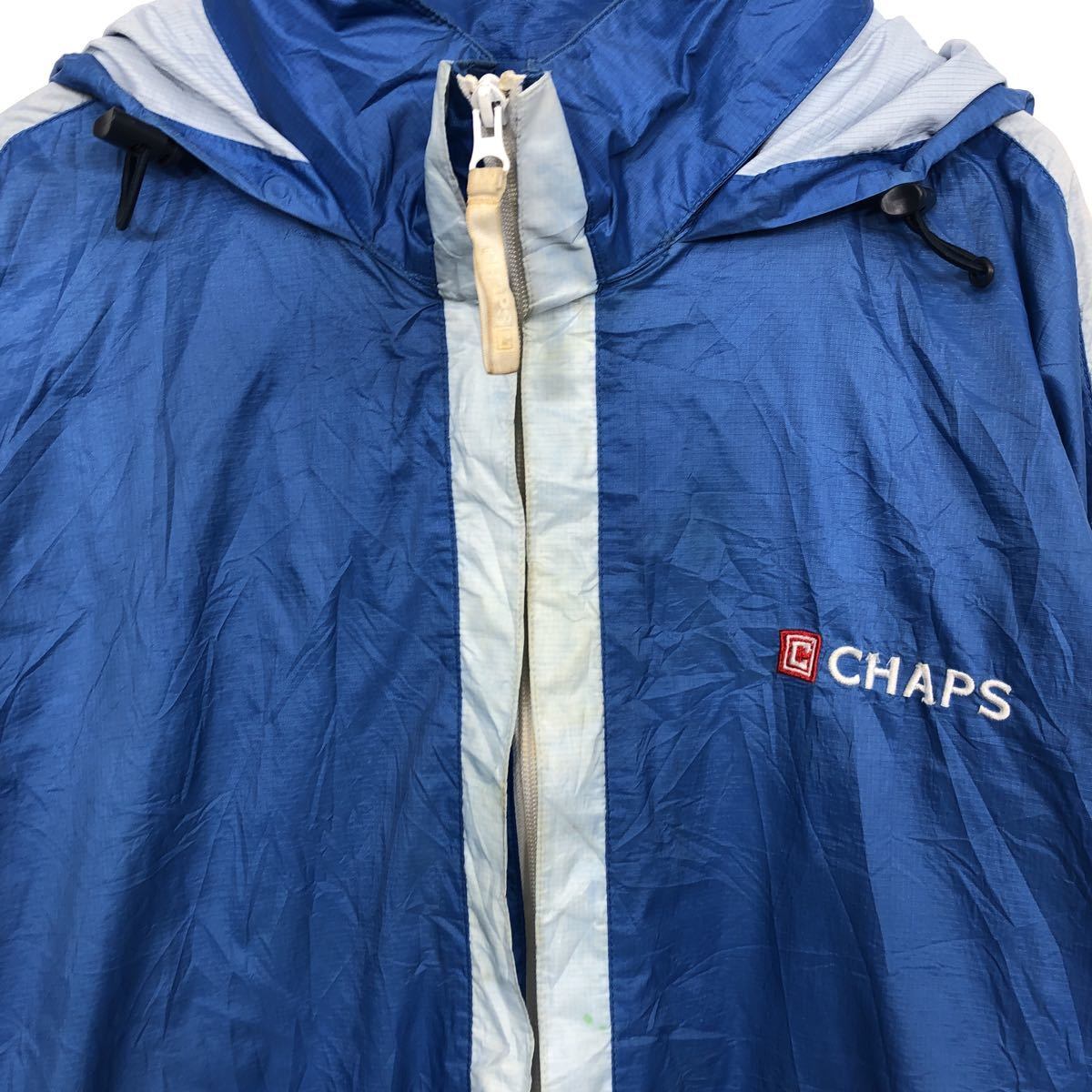 CHAPS ナイロンジャケット XXL ブルー チャップス フーディ アウトドア ワンポイント ナイロンパーカー 古着卸 アメリカ仕入 t2110-4243