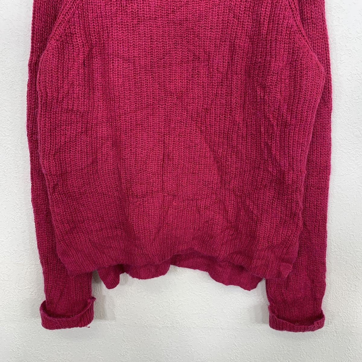ニット レディース M〜 ショッキングピンク セーター 丸首 ショート丈 長袖 スリット 無地 シンプル 古着卸 アメリカ仕入 t2112-3030