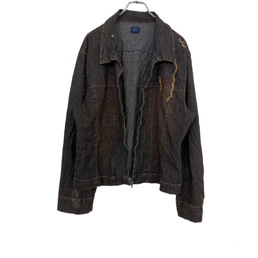 THE BLUES デニムジャケット レディース XXL ブラウン ブラック 装飾品 ビーズ ワンポイント 袖ジップ 古着卸 アメリカ仕入 t2112-3249
