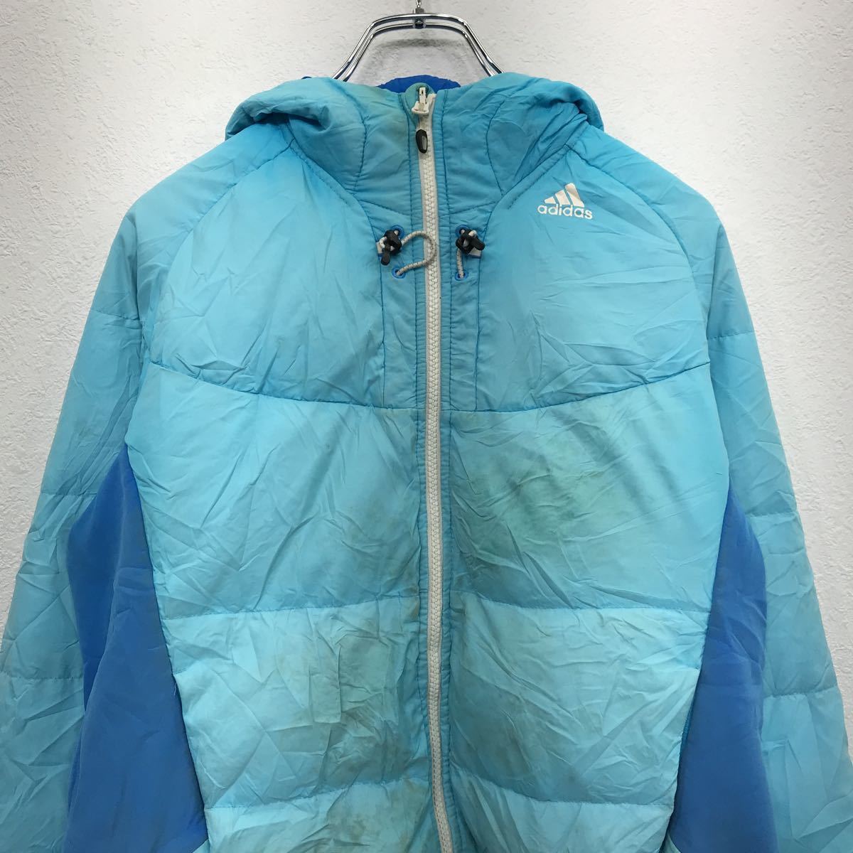 adidas ダウンジャケット レディース XL ブルー アディダス フルジップ フーディ 中綿ジャケット スポーツ 古着卸 アメリカ仕入 t2201-3385