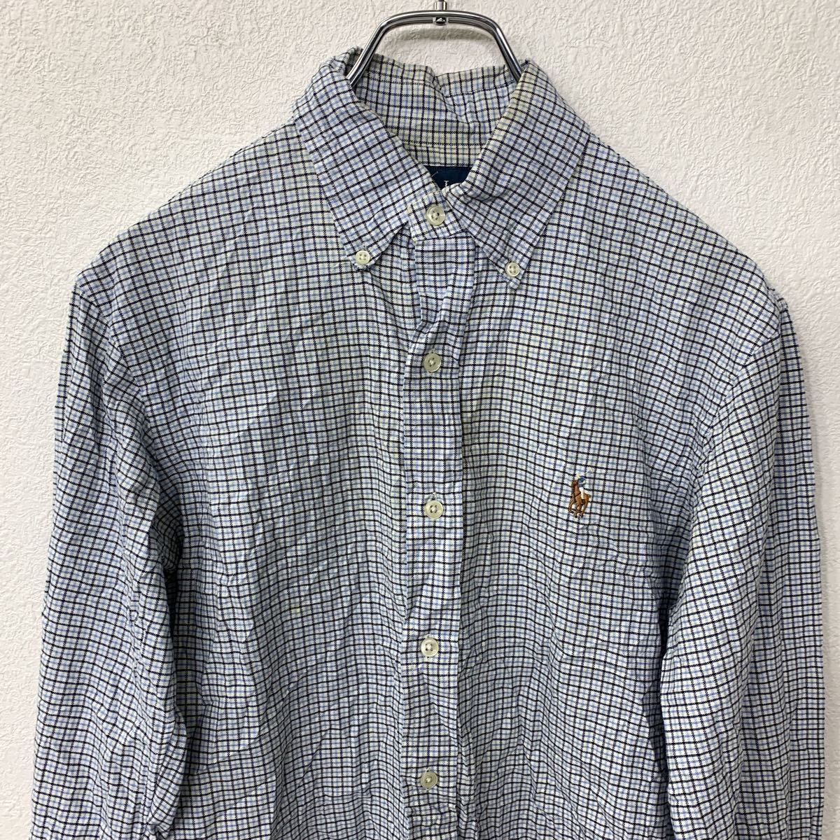 RALPH LAUREN 長袖チェックシャツ Sサイズ ラルフローレン ライトブルー ネイビー ホワイト 古着卸 アメリカ仕入 t2204-3106