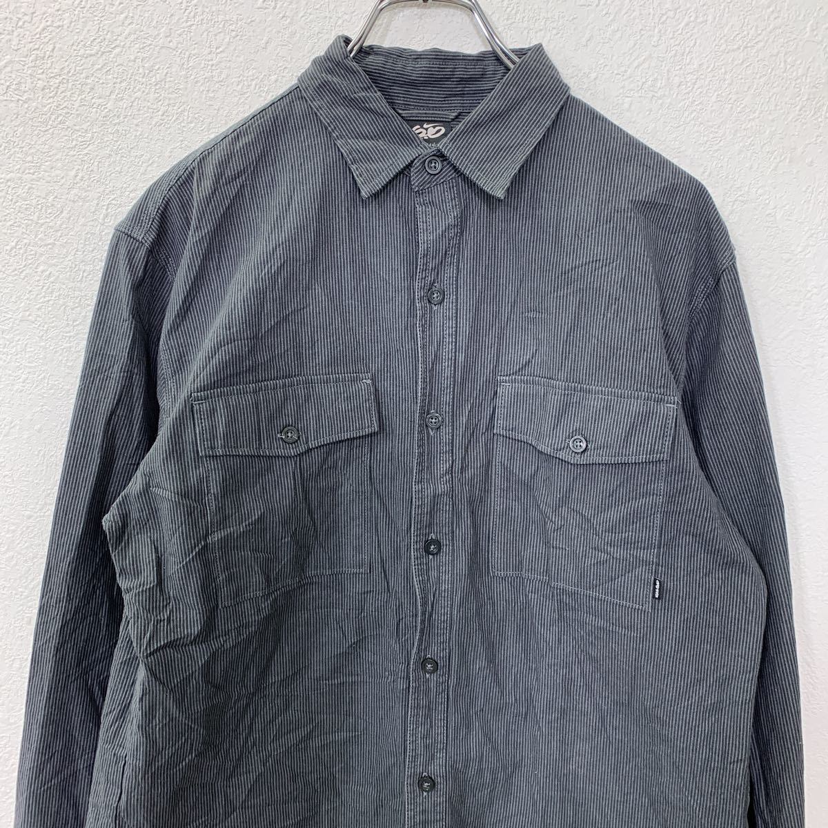 NIKE 長袖ストライプシャツ Mサイズ ナイキ スポーツブランド ブラック ダークグレー 古着卸 アメリカ仕入 t2208-3204