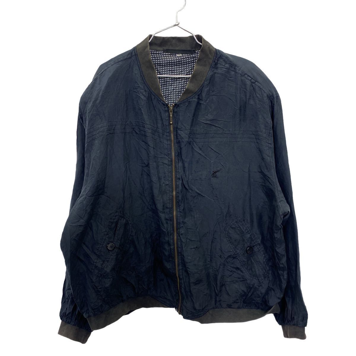 FINNE GAN シルクジャケット 2XLサイズ ビッグサイズ ロゴ刺繍 ブラック 古着卸 アメリカ仕入 t2210-3415