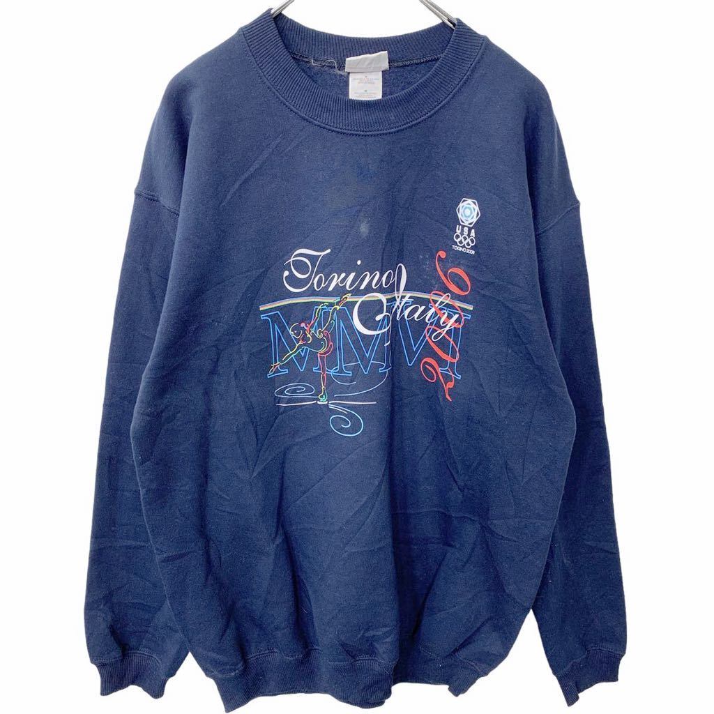 プリントスウェット Mサイズ トリノオリンピック ネイビー 古着卸 アメリカ仕入 t2211-3434
