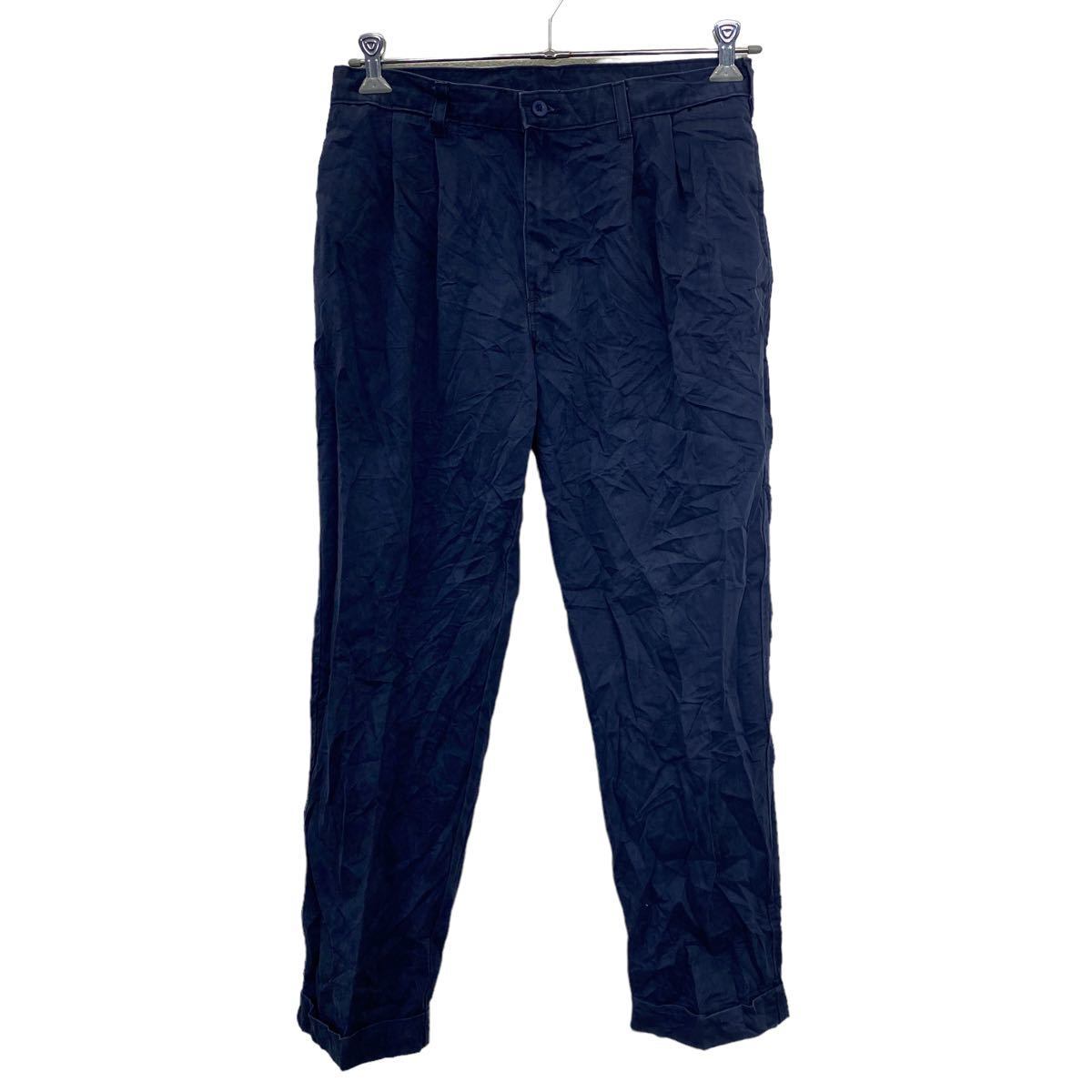 ロングパンツ W32 タックパンツ ネイビー 古着卸 アメリカ仕入 2301-919