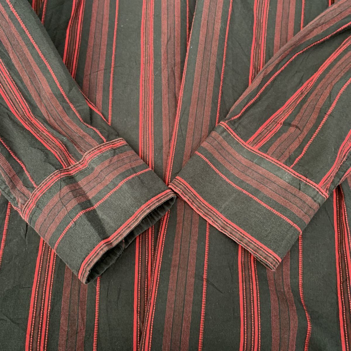 ALFANI 長袖 ストライプ シャツ M ブラック レッド 古着卸 アメリカ仕入 a502-5117