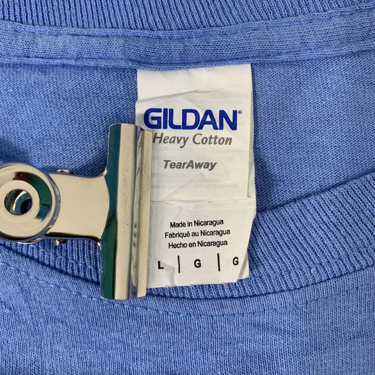 GILDAN 長袖 プリント Tシャツ L ブルー イエロー オレンジ ギルダン バックプリント ロンT 古着卸 アメリカ仕入 a503-5356