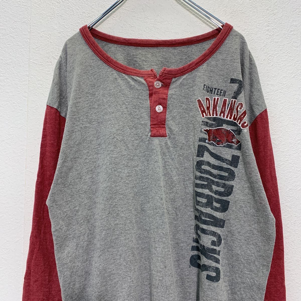七分丈 プリント Tシャツ Mサイズ位 グレー レッド ボタン ロンT 古着卸 アメリカ仕入 a503-5779