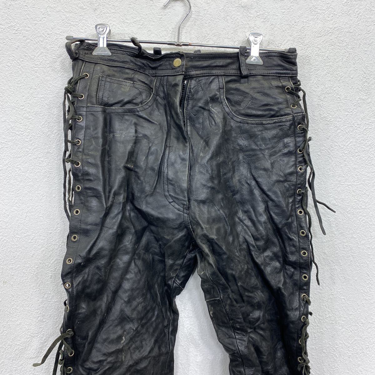 レザーパンツ W30位 サイドレースアップ バイカーパンツ ブラック 古着卸 アメリカ仕入 2303-654