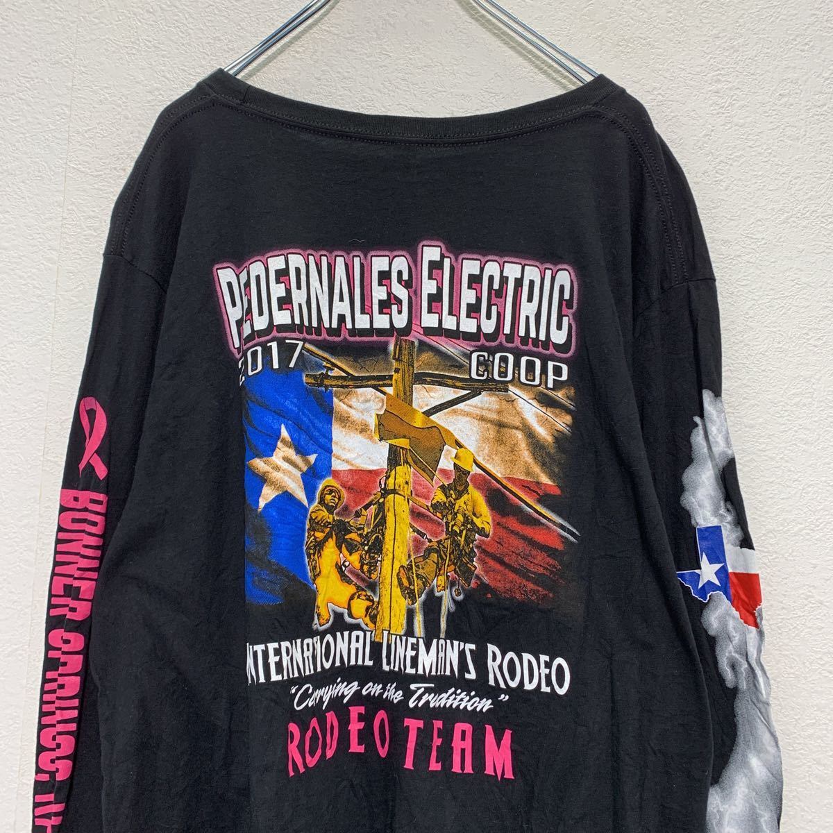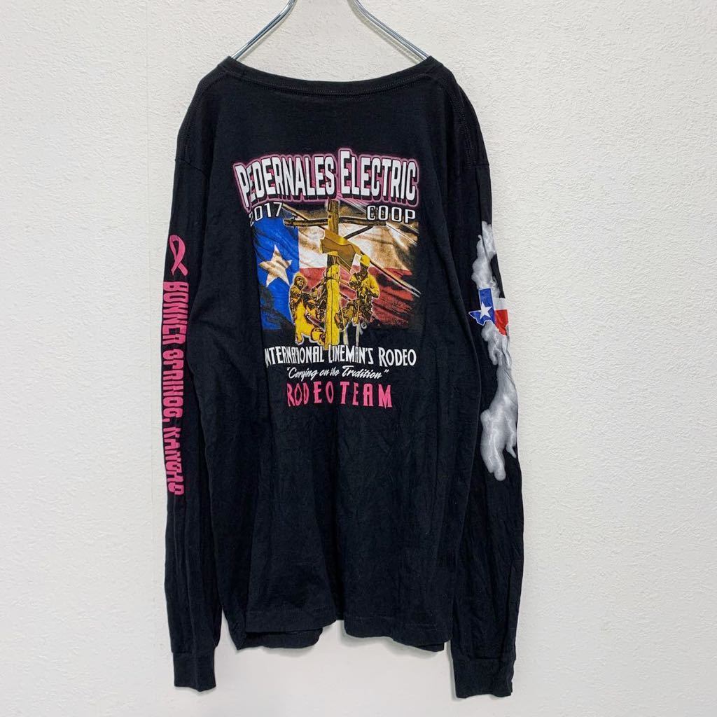 CANVAS 長袖 プリント Tシャツ XL ブラック バックプリント RODEO TEAM ロンT 古着卸 アメリカ仕入 a503-5917