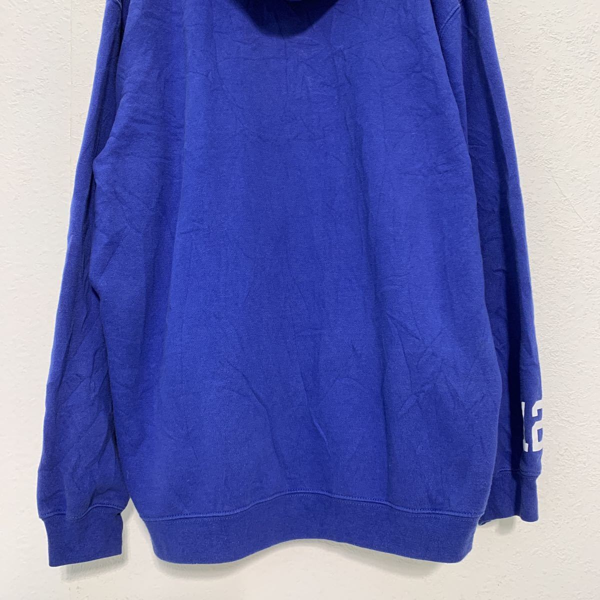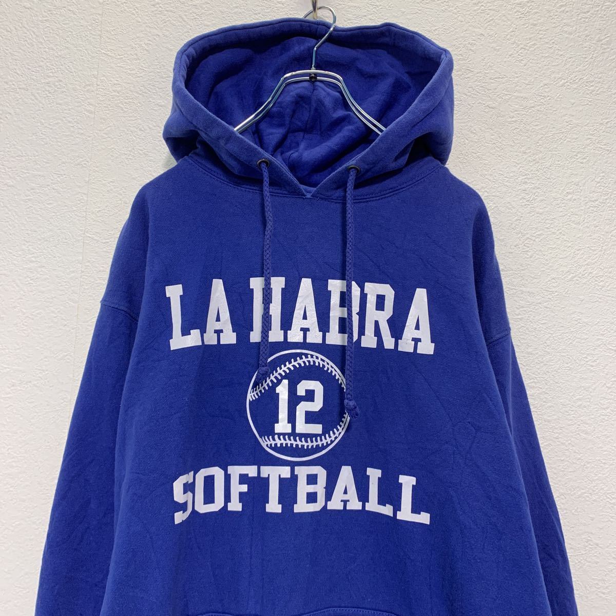 プリント スウェット パーカー M ブルー フーディー プルオーバー ソフトボール 古着卸 アメリカ仕入 a503-6176