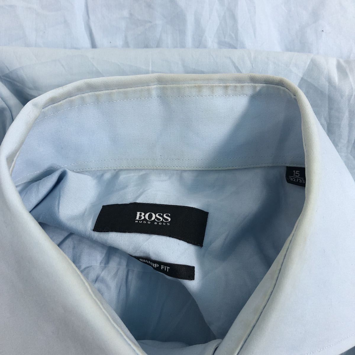 HUGO BOSS ドレス シャツ M位 ライトブルー ヒューゴボス カッタウェイ 古着卸 アメリカ仕入 a503-6335