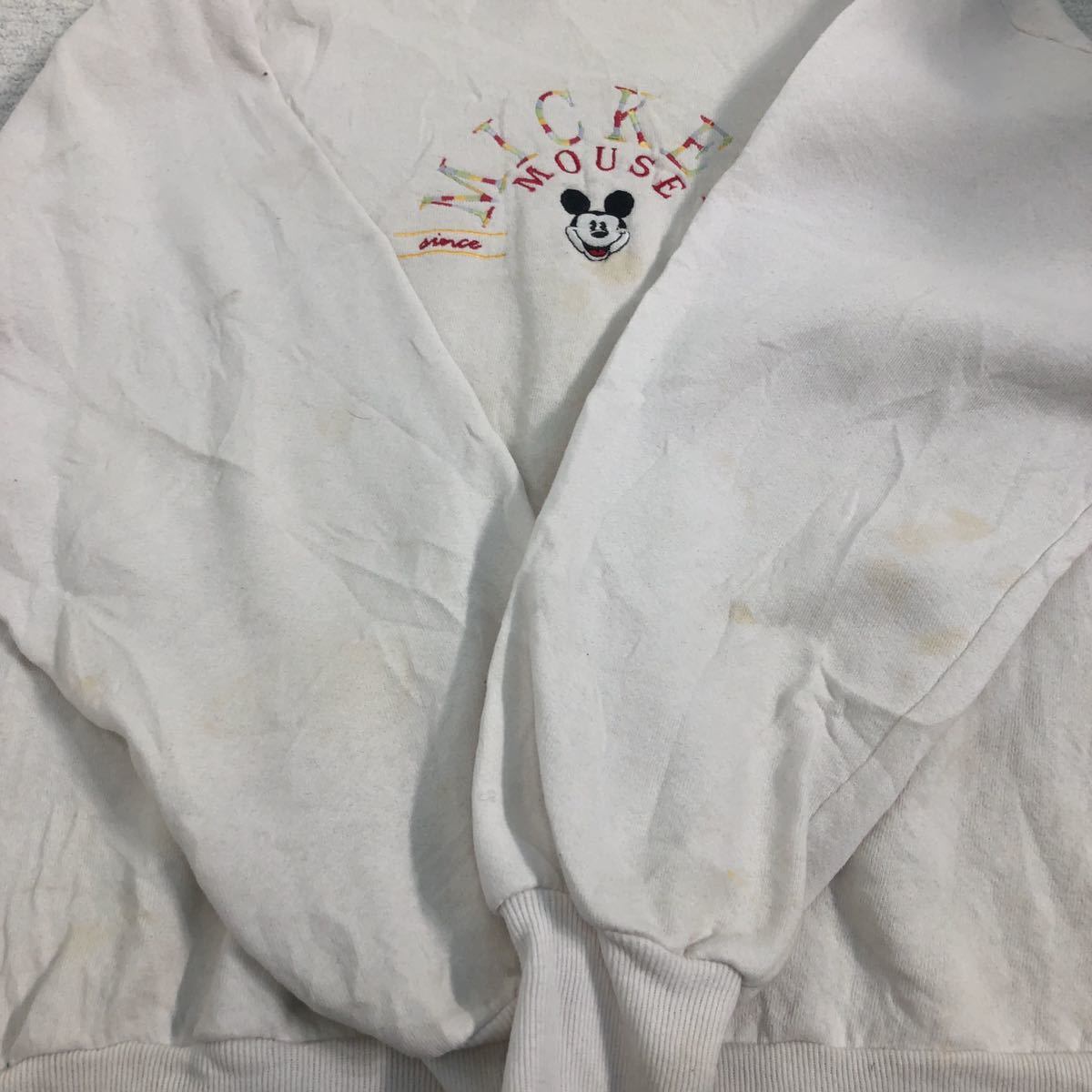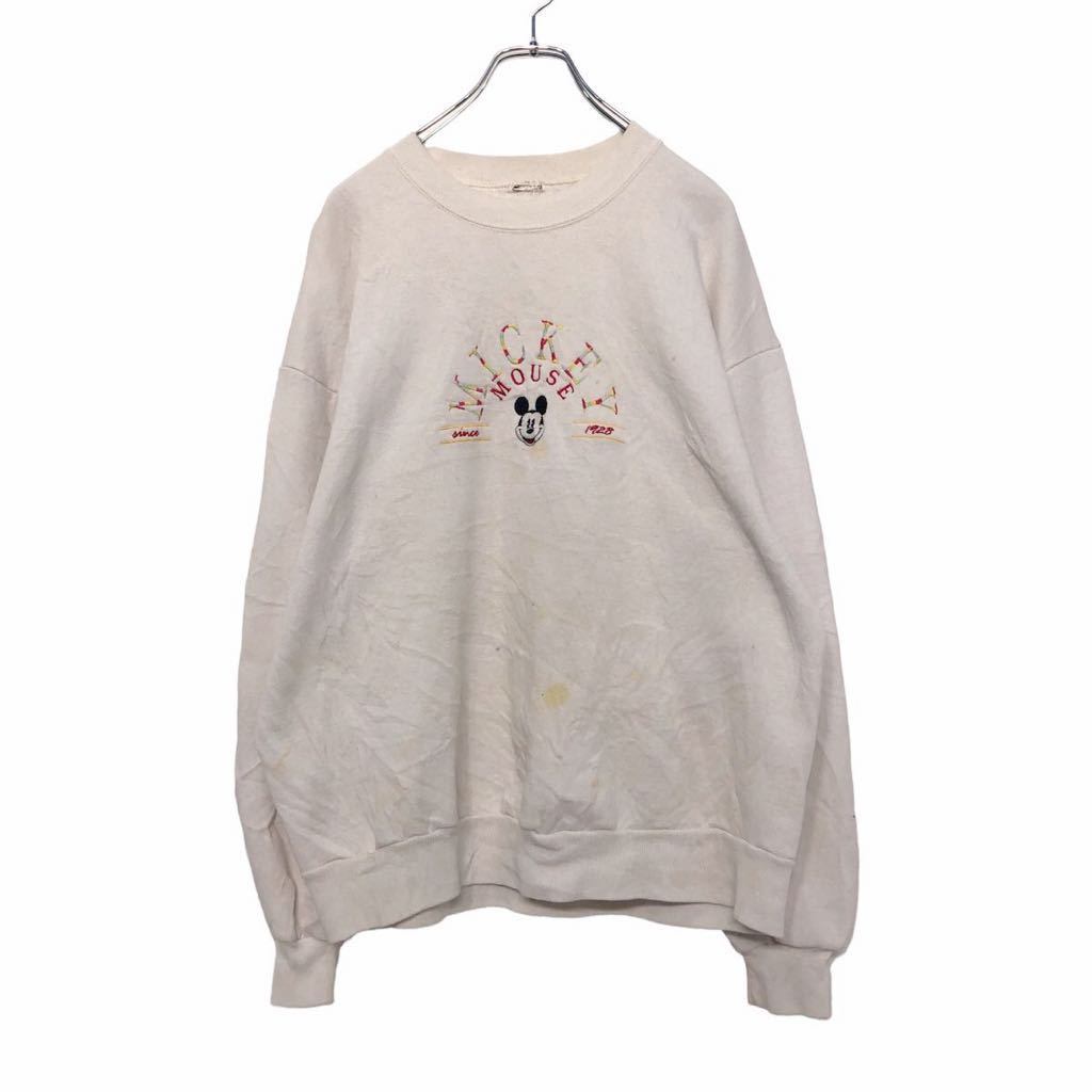 Mickey Mouse キャラクター スウェット トレーナー XL位 ホワイト 刺繍 ミッキー マウス ディズニー 古着卸 アメリカ仕入 a503-6462