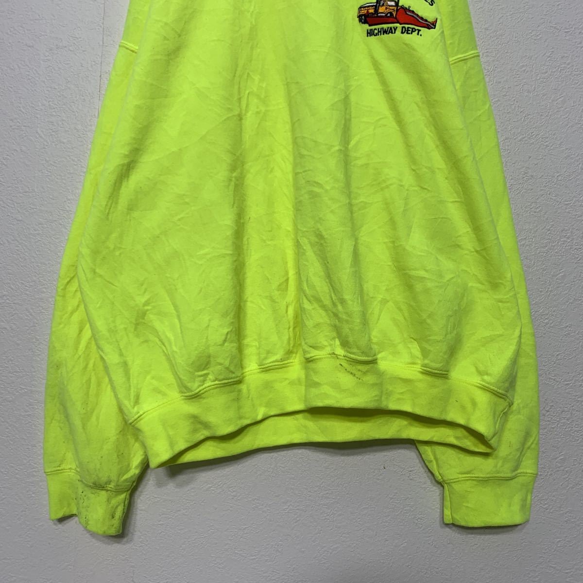 GILDAN スウェット トレーナー XL ネオンイエロー ギルダン 刺繍 ビッグサイズ 古着卸 アメリカ仕入れ a412-5424