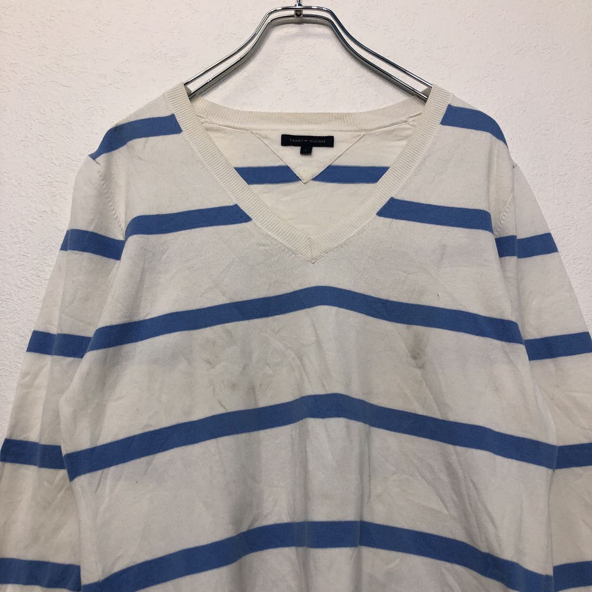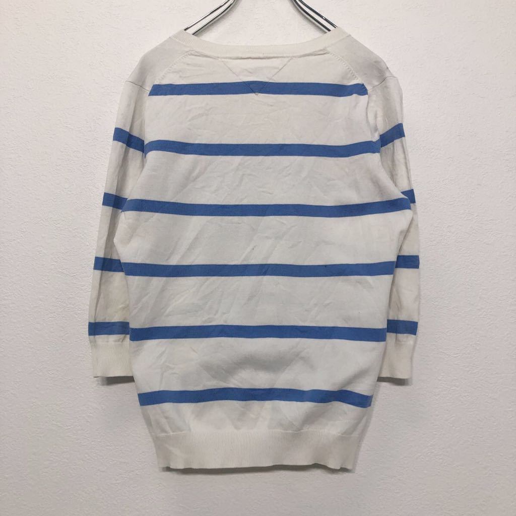 TOMMY HILFIGER Vネック 七分丈 ボーダー セーター L ホワイト ブルー トミーヒルフィガー レディース a503-7140