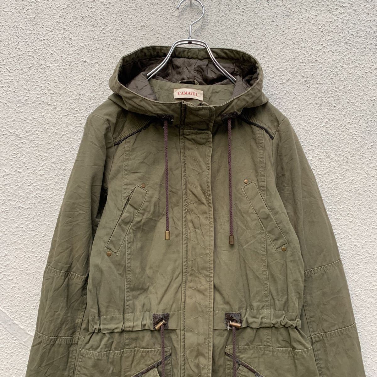 CAMAIEU モッズコート レディース XS モスグリーン ウエスト絞り ミリタリー 古着卸 アメリカ仕入れ a409-5394