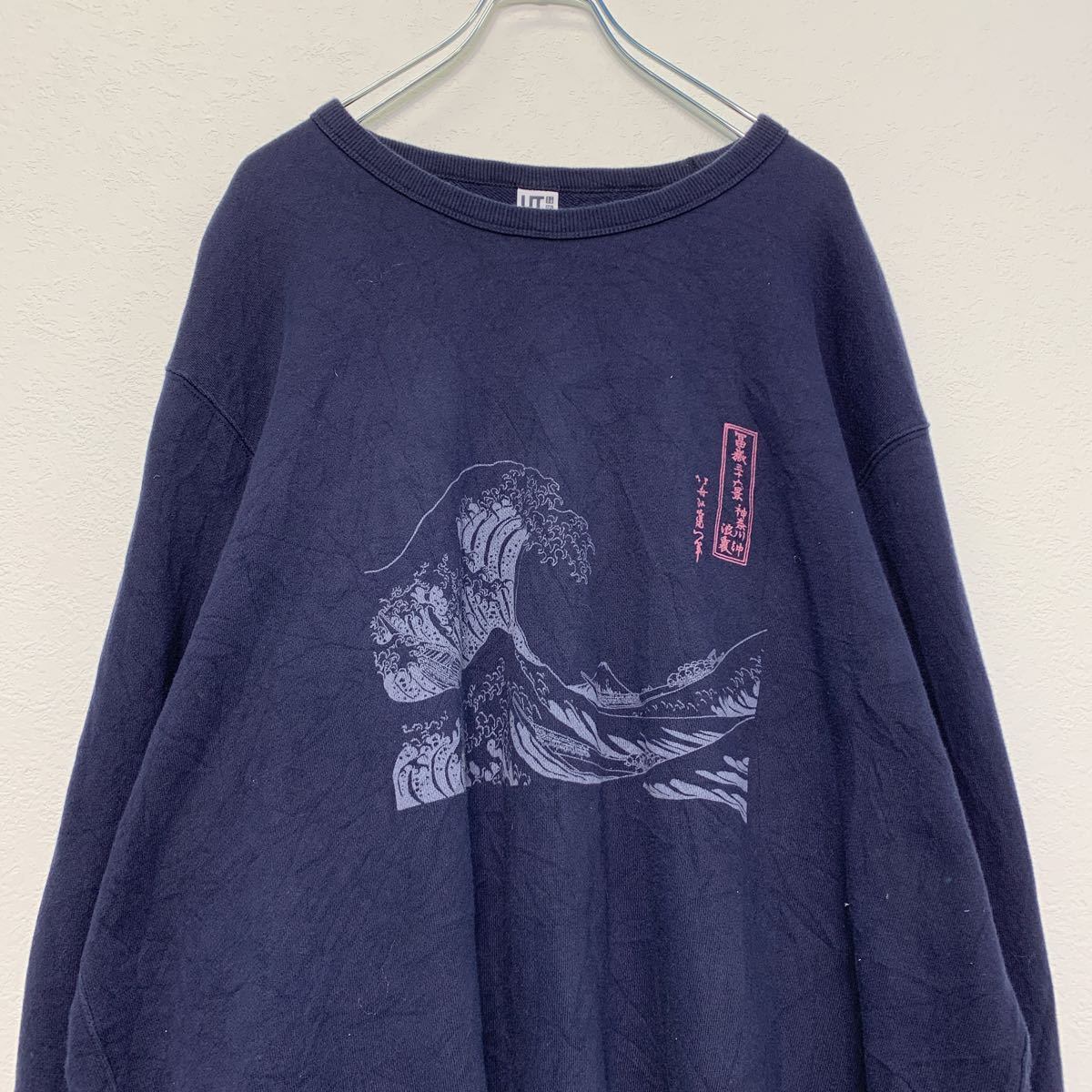 UNIQLO プリント スウェット トレーナー 2XL ネイビー ユニクロ 葛飾北斎 ビッグサイズ 古着卸 アメリカ仕入 a504-5517