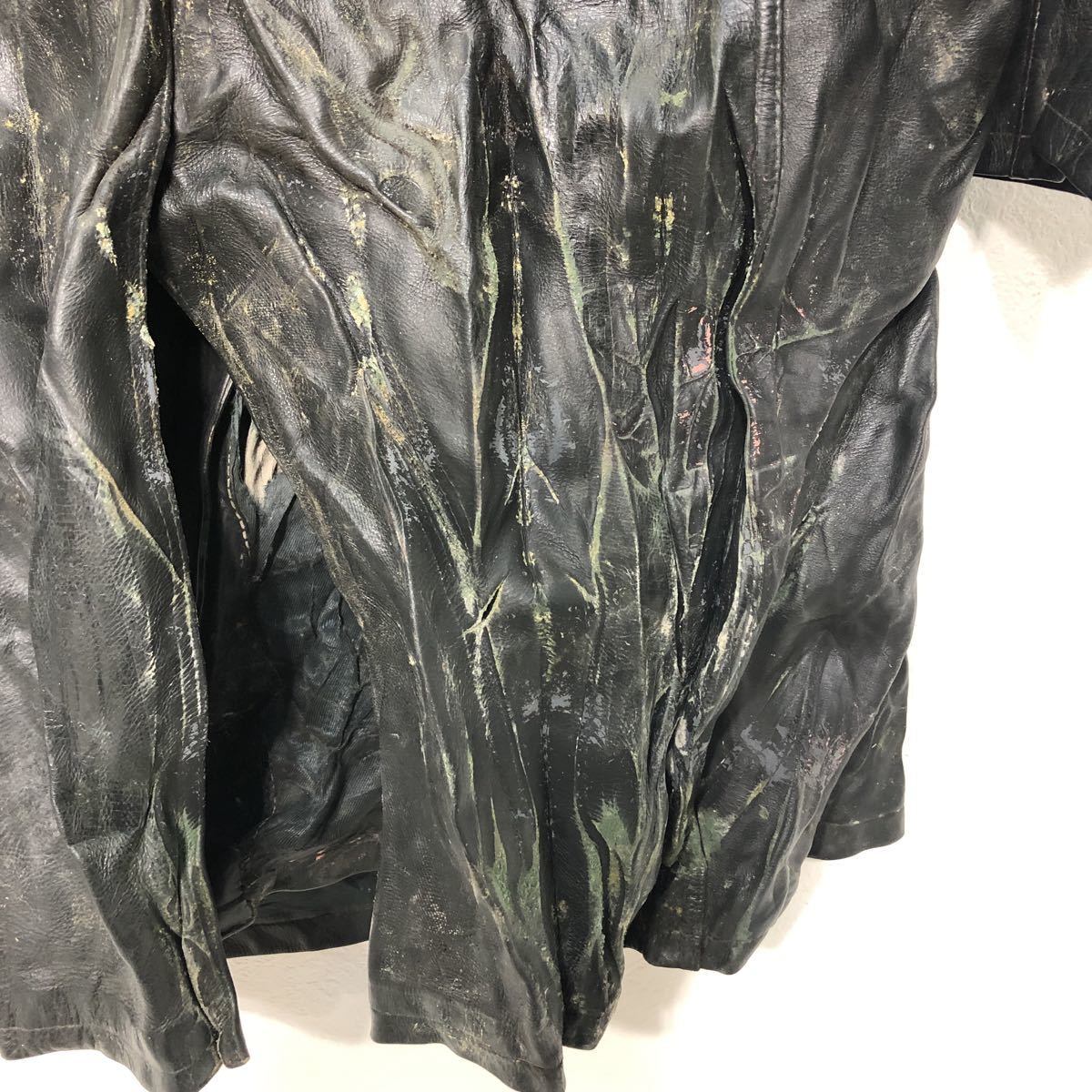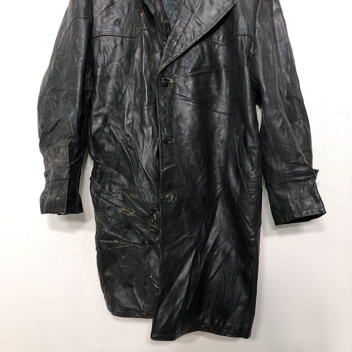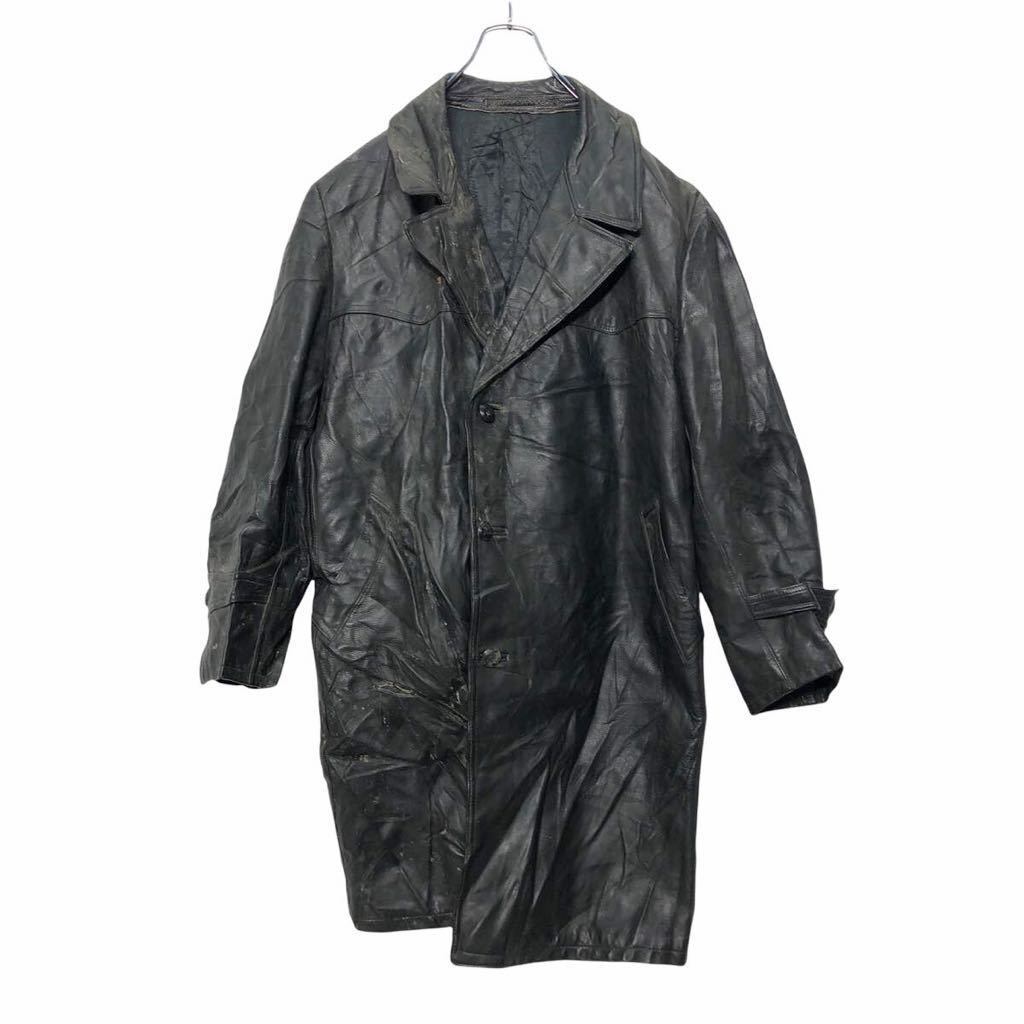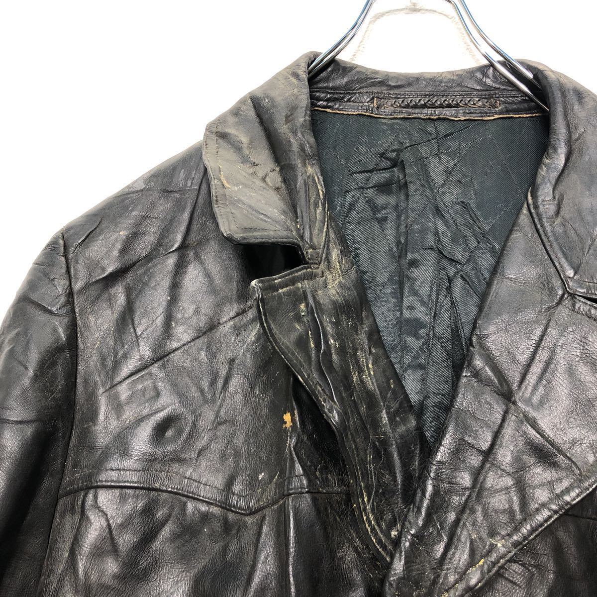 レザーロングコート XLサイズ位 チェスターコート レザージャケット 黒 ブラック 古着卸 アメリカ仕入れ a403-5144