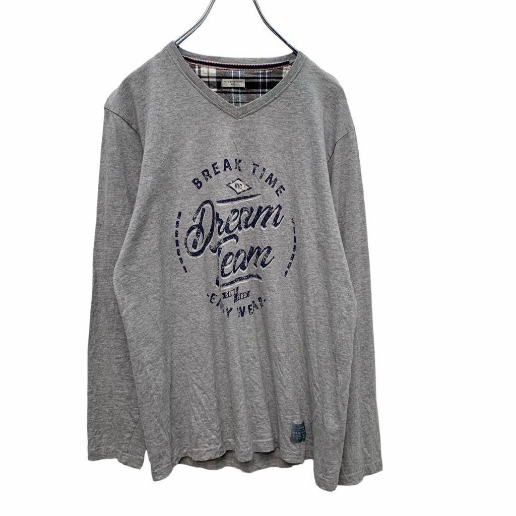 EASY WEAR 長袖 プリント Tシャツ M グレー ネイビー Vネック ロンT 古着卸 アメリカ仕入れ a501-5324
