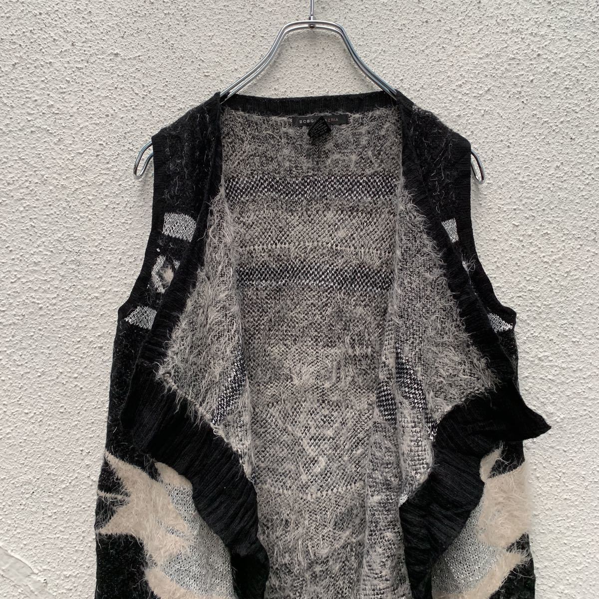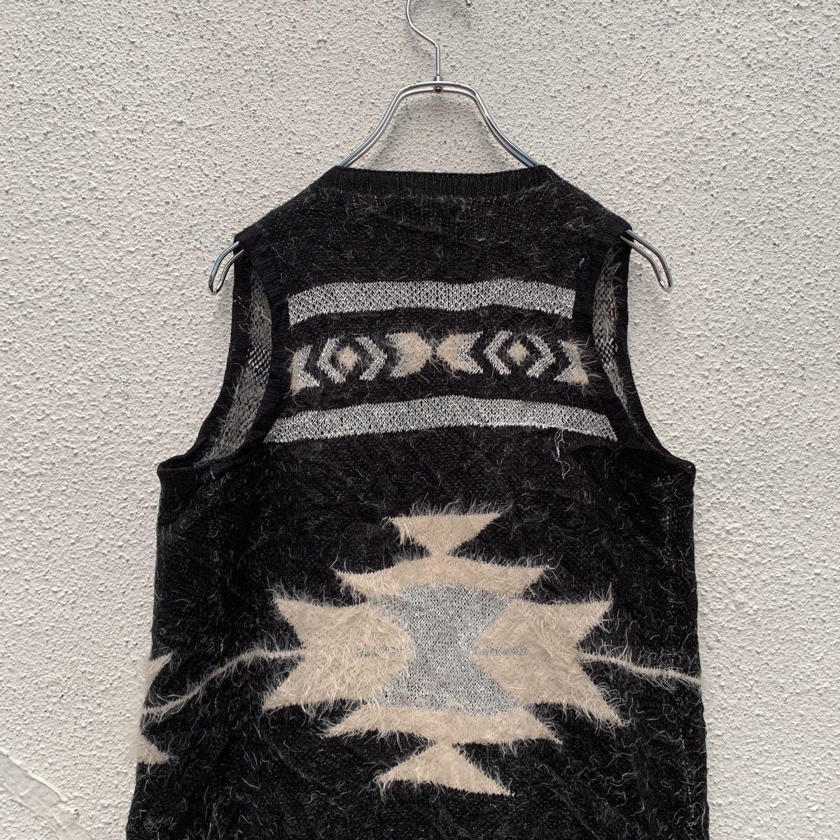 ニット ベスト レディース S ブラック ホワイト シルバー ノルディック 柄 古着卸 アメリカ仕入れ a501-5500