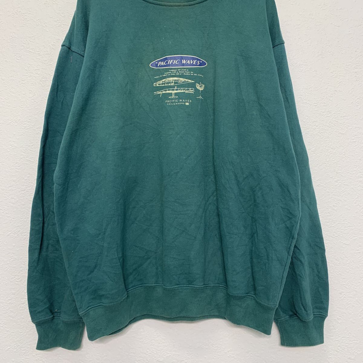 PACIFIC WAVES プリント スウェット トレーナー S グリーン パシフィックウェーブス シンプル 古着卸 アメリカ仕入 a504-6355