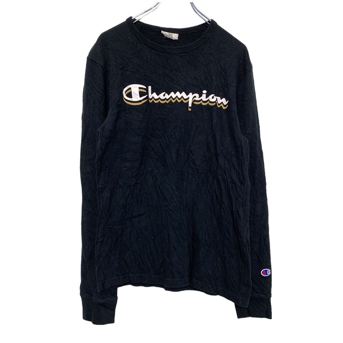 champion 長袖 プリント Tシャツ S ブラック チャンピオン ロンT ロングTシャツ 古着卸 アメリカ仕入 a505-5186