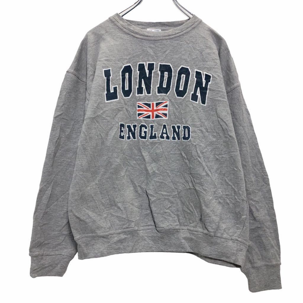 SPORTSCLUB プリント スウェットトレーナー L ライトグレー ネイビー スポーツクラブ ユニオンジャック 古着卸 アメリカ仕入 a505-6519