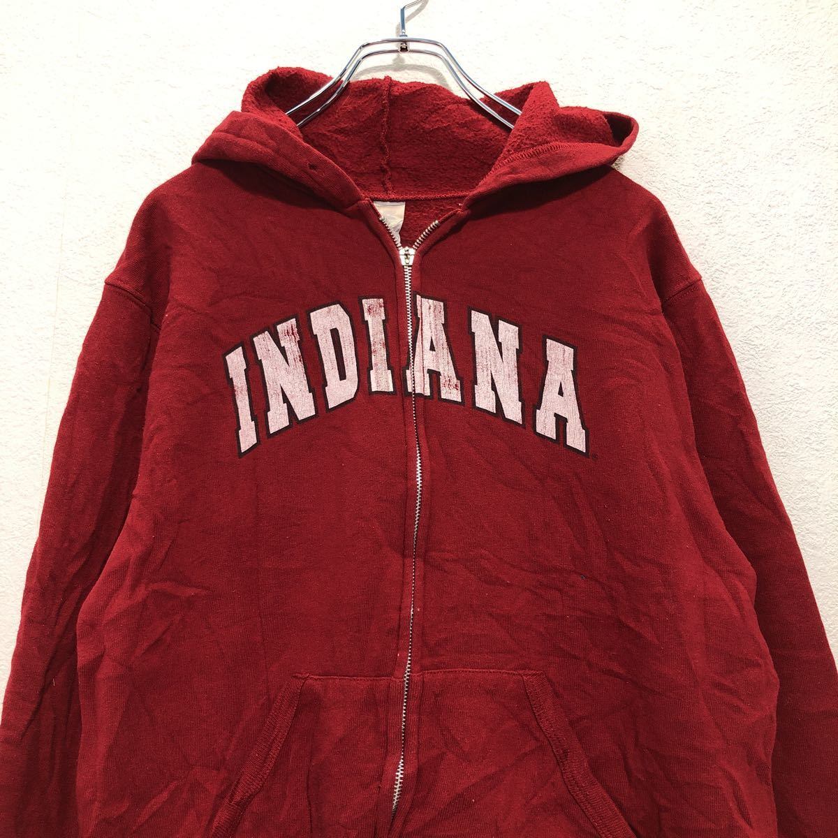 RUSSELL プリント スウェットトレーナー レディース L レッド ホワイト ラッセル フーディ ポケット 古着卸 アメリカ仕入 a505-6575