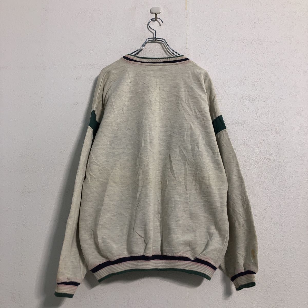 WILSON プリント スウェット トレーナー XL ライトグレー グリーン パープル ワンポイントロゴ 切り替え 古着卸 アメリカ仕入 a506-5125