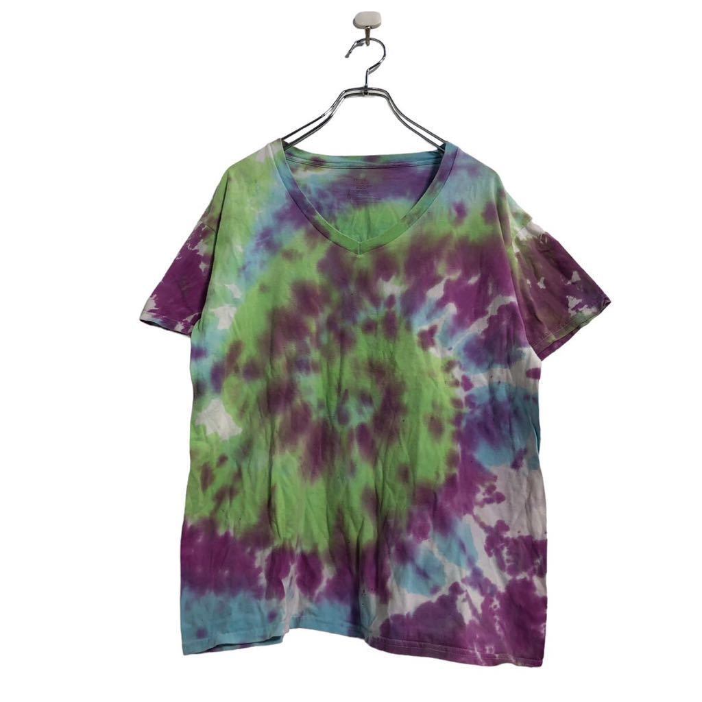 Hanes 半袖 タイダイ Tシャツ M パープル ライトブルー ライトグリーン ホワイト ヘインズ Vネック 古着卸 アメリカ仕入 a506-6567