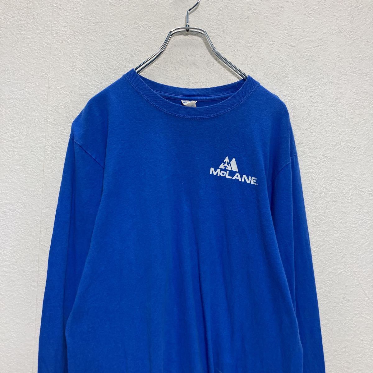 PORT&COMPANY 長袖 プリント Tシャツ M ブルー ホワイト 文字 ロゴ ロンT 古着卸 アメリカ仕入 a507-5069