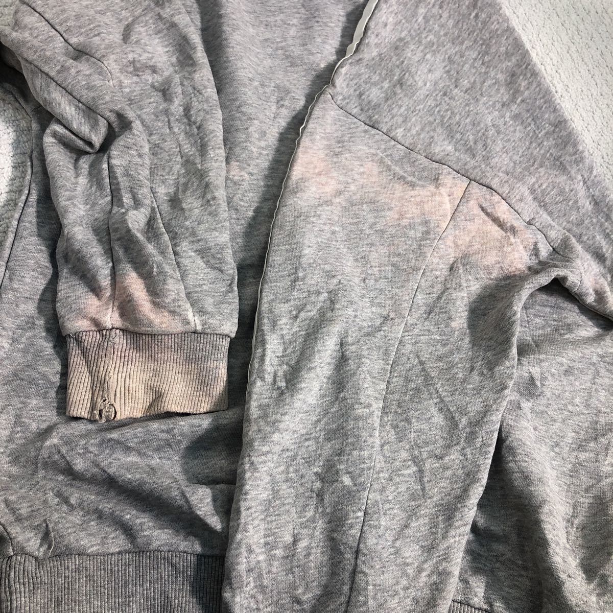状態確認 C ランク品 ロゴに汚れがあります。 胸からお腹に汚れがあります。 両袖に汚れがあります。 右袖にほつれや穴があります。