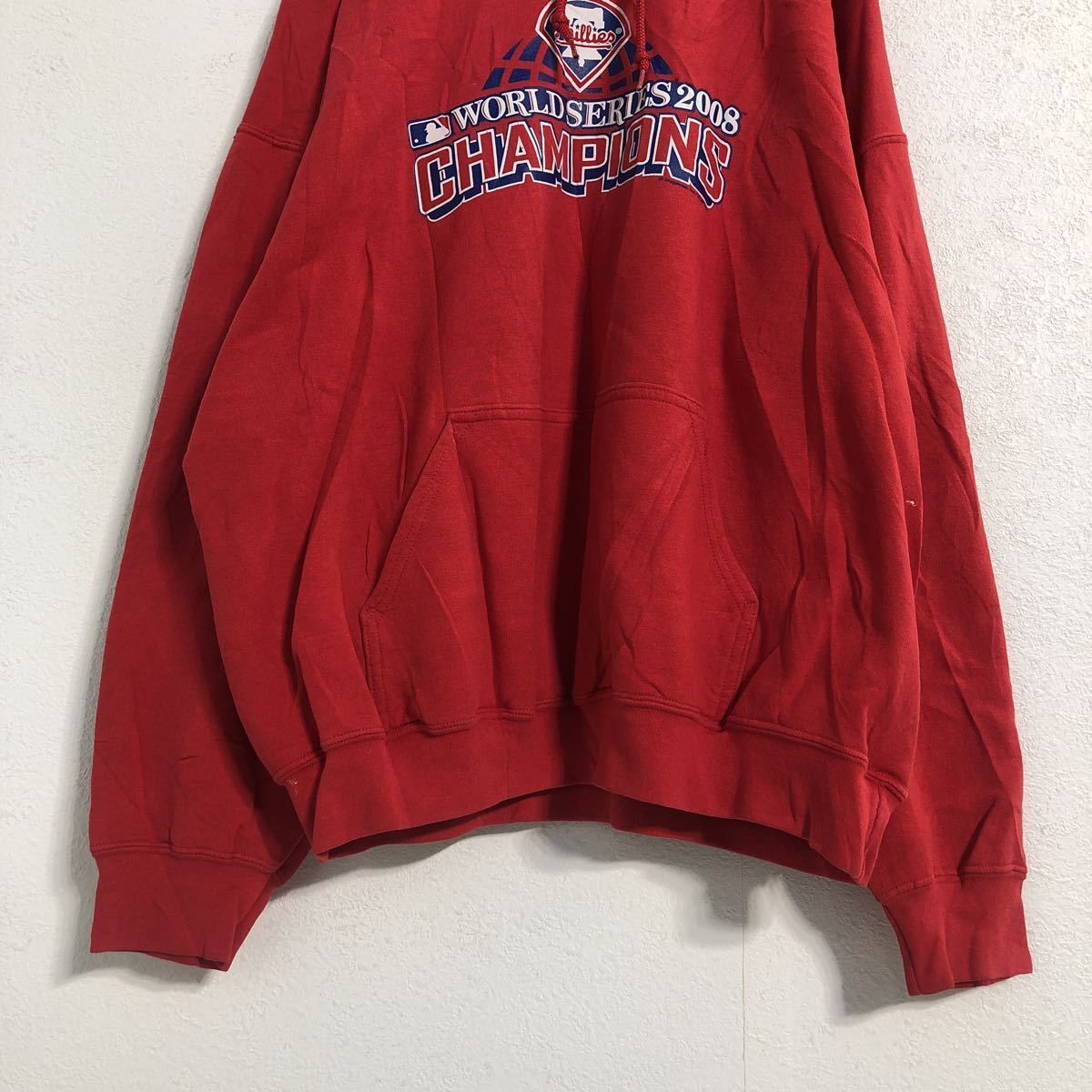 GILDAN プリント スウェット パーカー XL レッド ギルダン プルオーバー 野球 ワールドシリーズ 2008 古着卸 アメリカ仕入 a507-5170