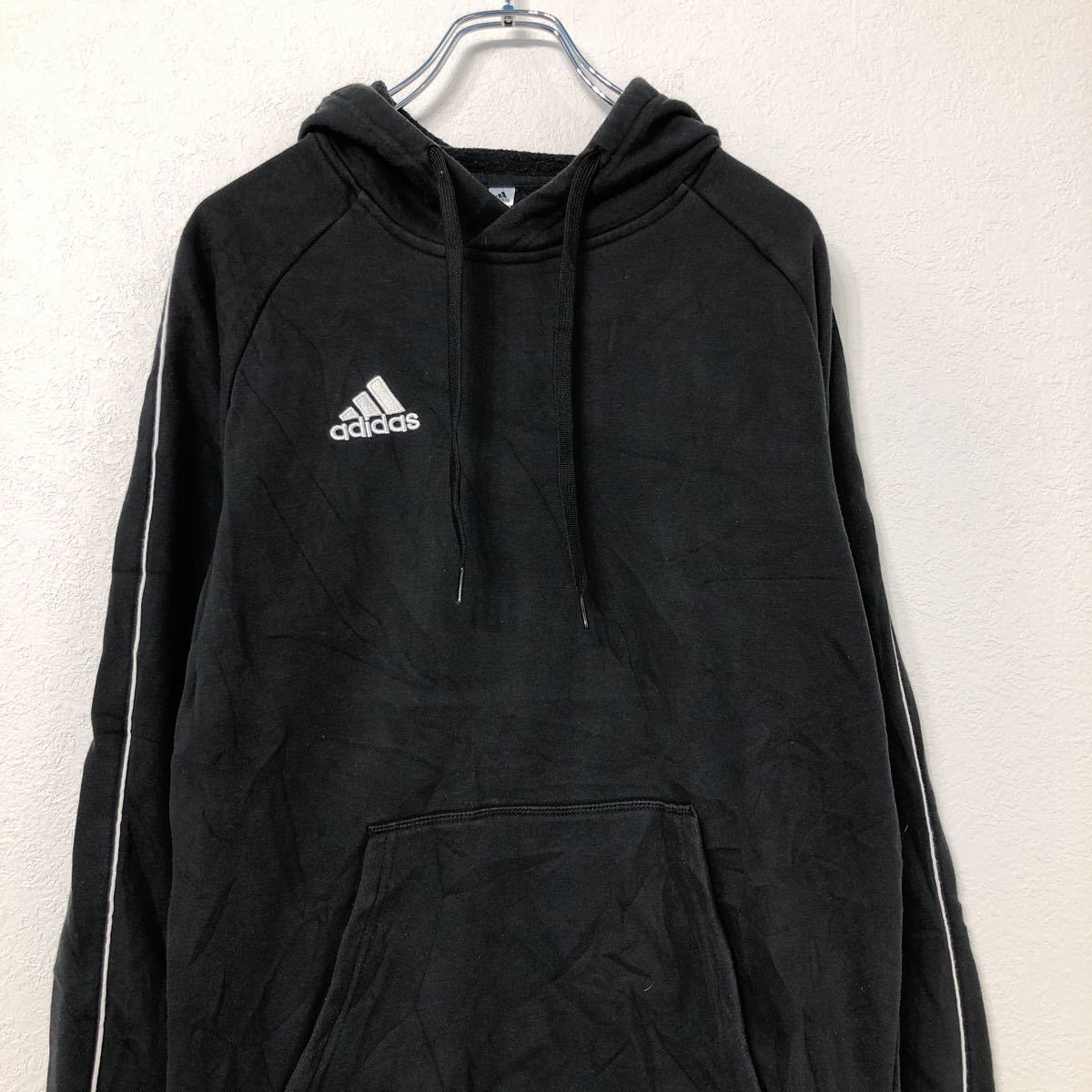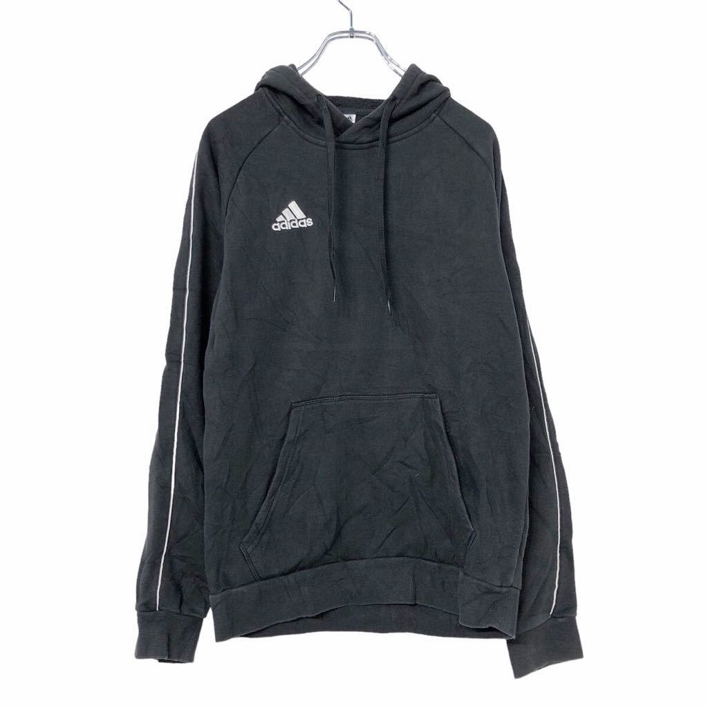 adidas ロゴ スウェットパーカー S ブラック ホワイト アディダス ラグラン ポケット ライン 古着卸 アメリカ仕入 a507-5340