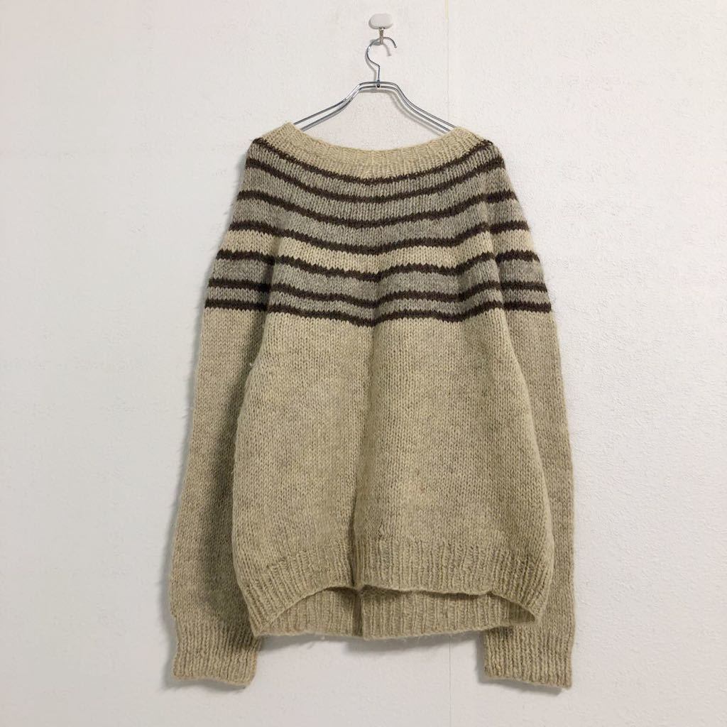 ニット セーター XL ベージュ ブラウン グレー ハンドメイド 厚手 丸首 古着卸 アメリカ仕入 a507-5371