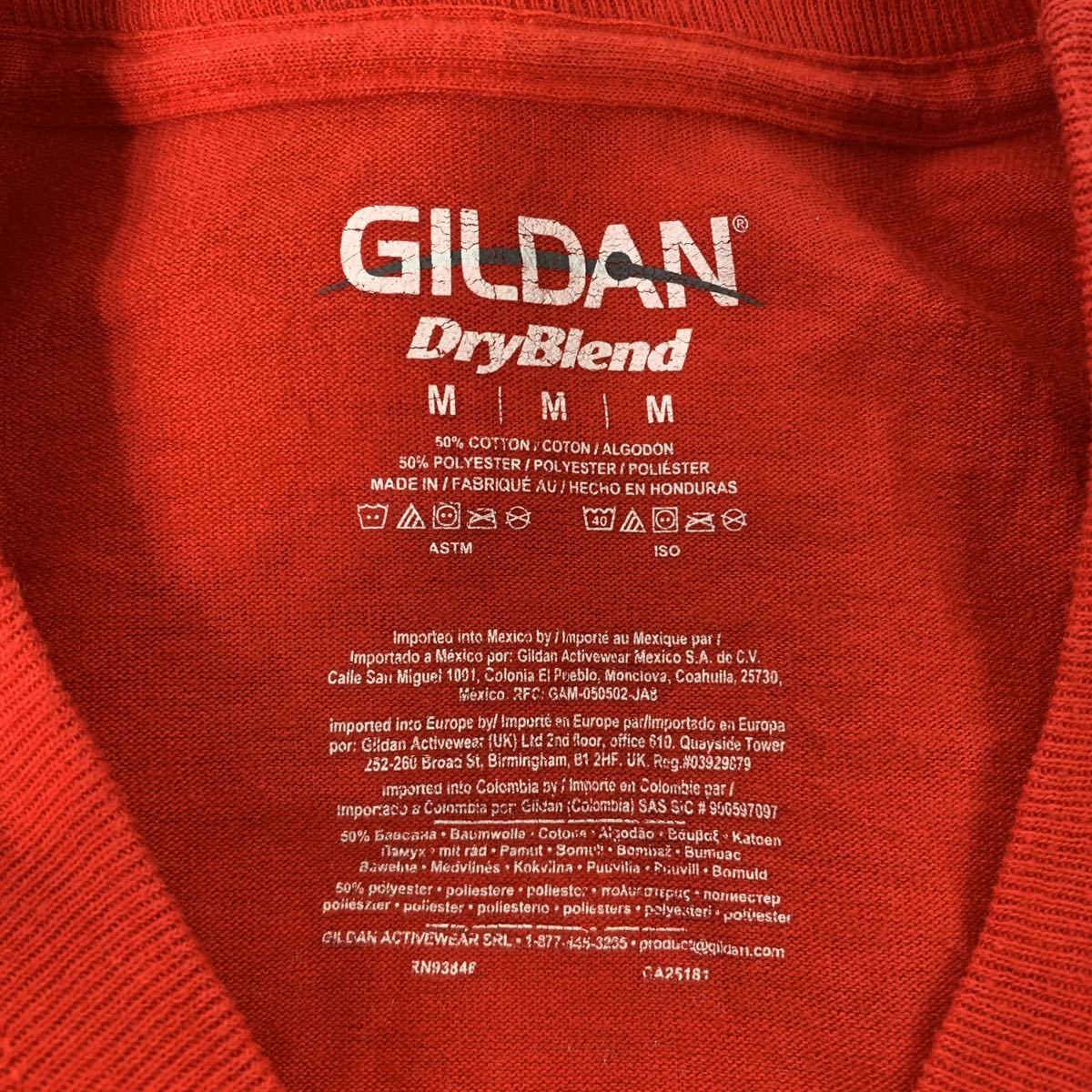 GILDAN 長袖 プリント Tシャツ M レッド グレー ブラック ラグビー アメフト ロンT ギルダン 古着卸 アメリカ仕入 a507-5425