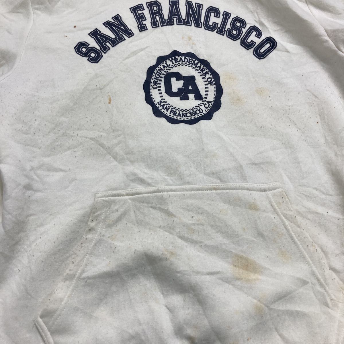 San Francisco City Wear プリント スウェット パーカー L ホワイト ネイビー サンフランシスコ ポケット 古着卸 アメリカ仕入 a507-5447